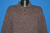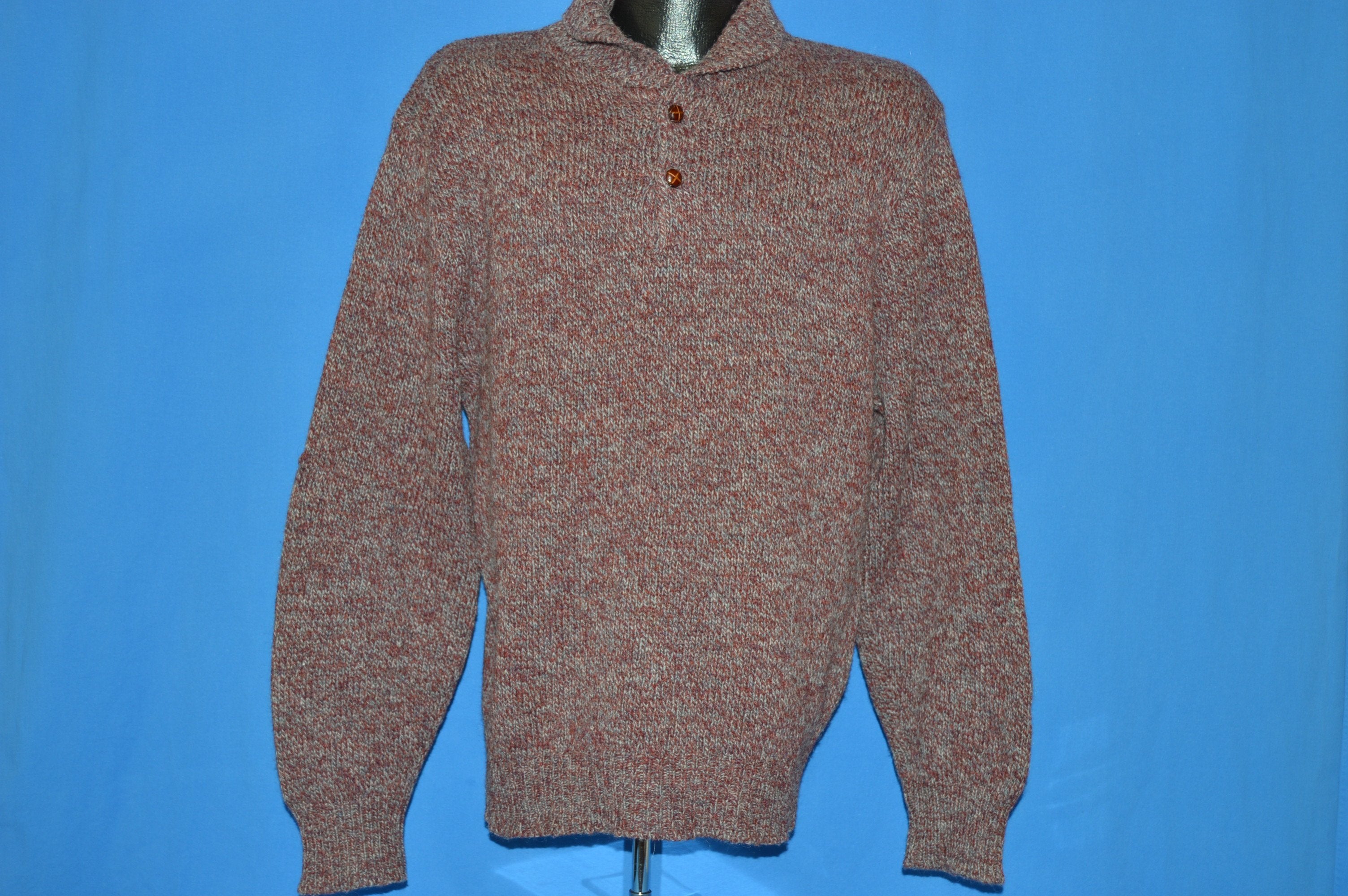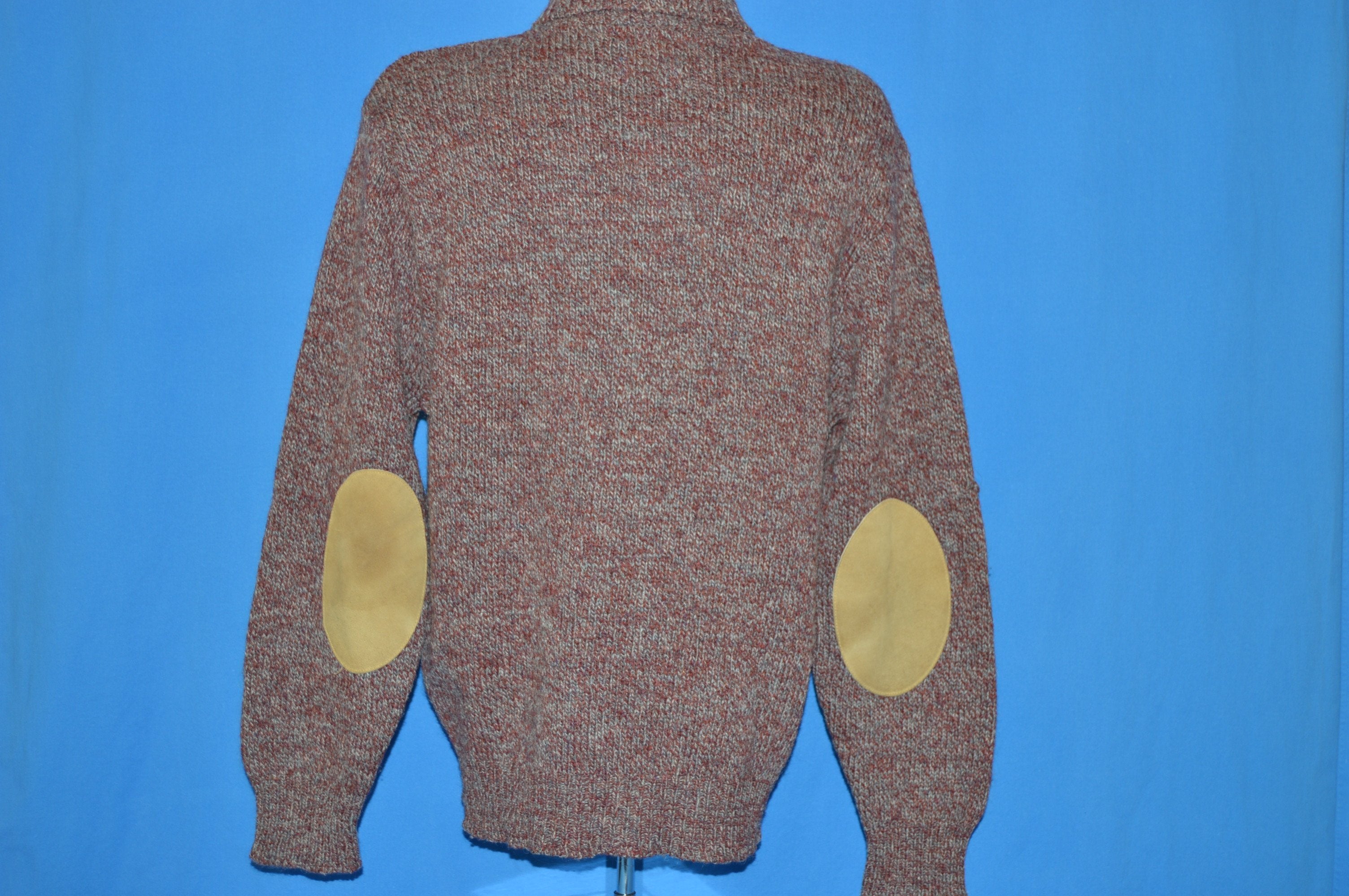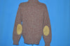 This maroon wool pull over sweater is from the 80s and is made by Pendleton. The sweater has a two button neck closure and elbow patches on the sleeves.