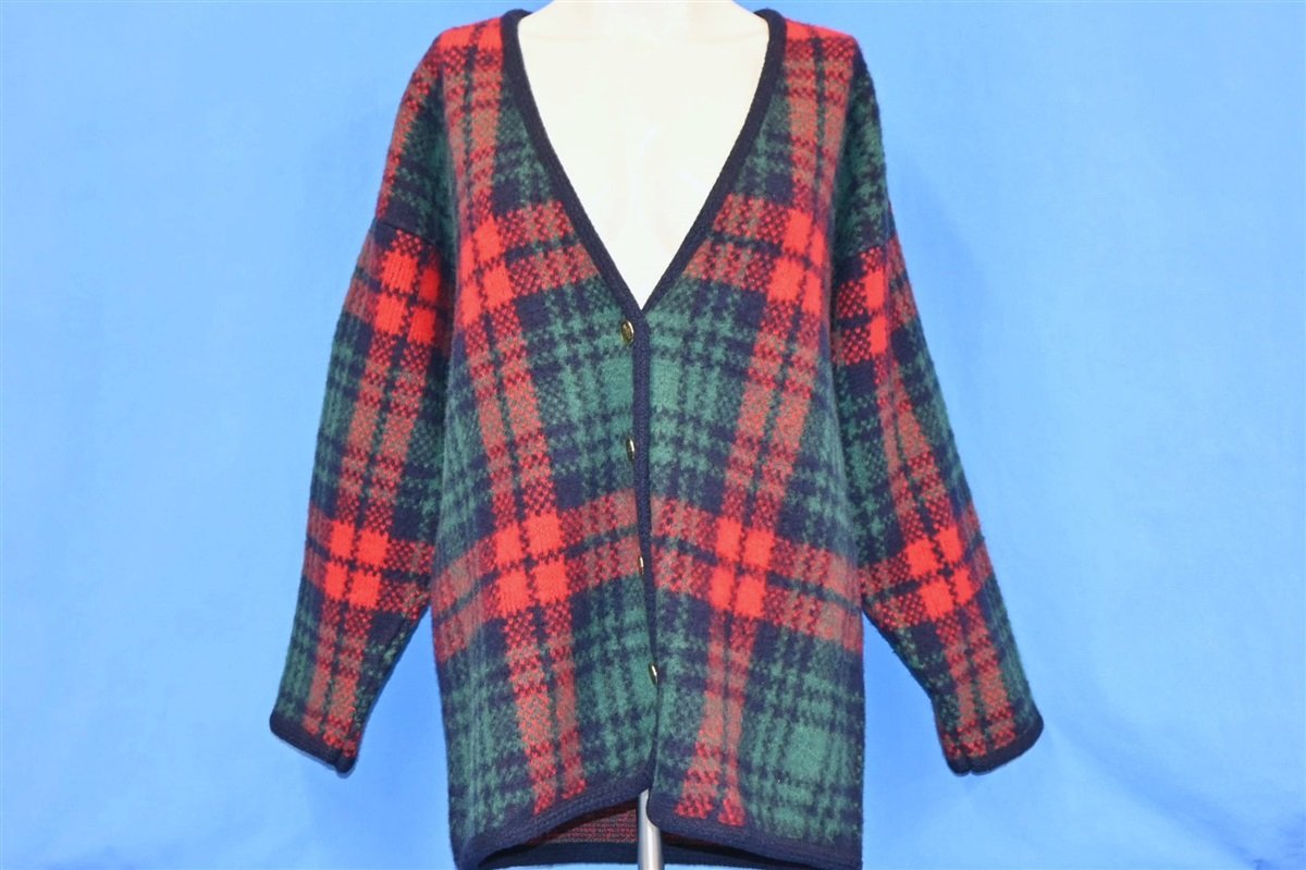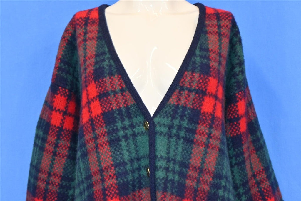 80s Robert Mackie Red Plaid Cardigan Sweater Women's Medium