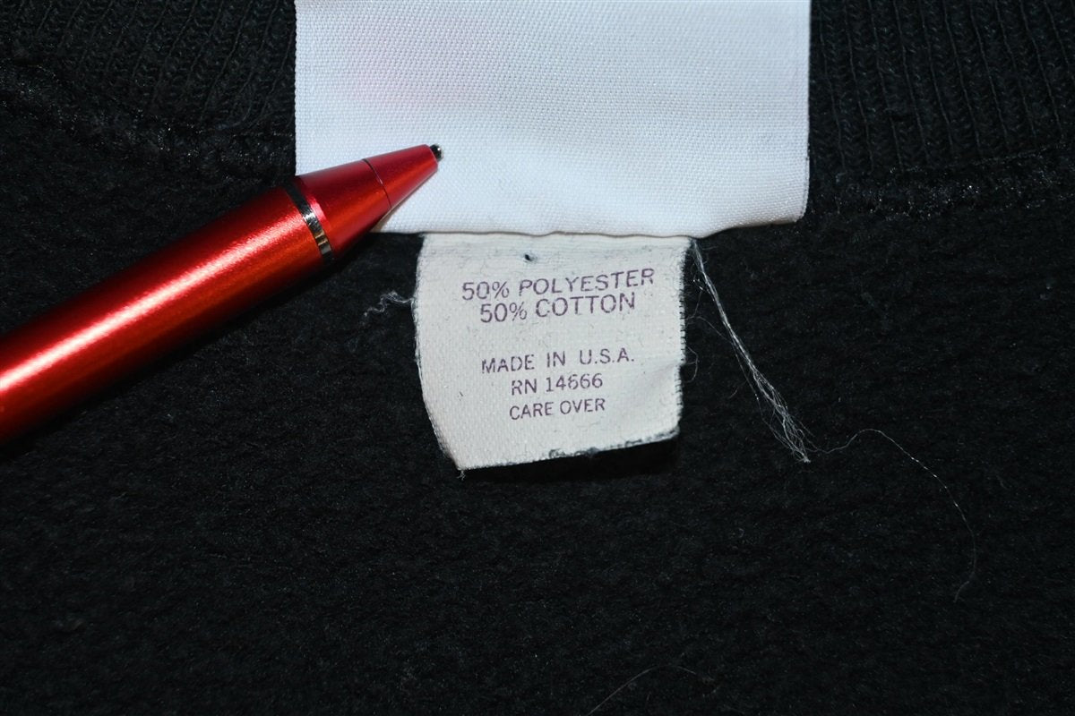 This sweet sweatshirt celebrates a 1985 concert tour from the supergroup The Firm. This shirt highlights the band's guitarist Jimmy Page, who is also celebrated for his time with the seminal rock band Led Zepplin. Other members of The Firm included Bad Company's Paul Rodgers, AC/DC's Chris Slade, and Tony Franklin, who had previously worked with Page on Roy Harper's album Whatever Happened to Jugula?
