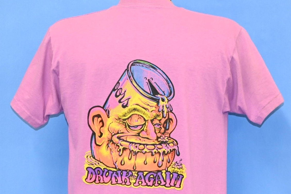 70s Drunk Again Roach Neon Iron On Purple t-shirt Medium
