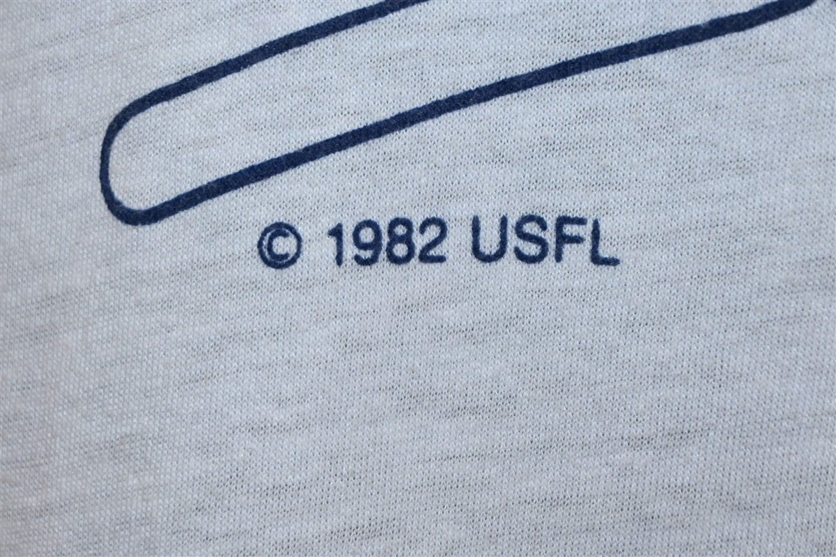 This sweet ringer reps the Oakland Invaders, who used to be a part of the United States Football League during its brief stint in the 80s. The USFL was a professional league that operated on a spring/summer schedule, and it was intended to keep football fans entertained during the NFL's off-season. The Invaders were active throughout the league's entire tenure, from 1983 through 1985. The Oakland team also filled a void that was left when the Oakland Raiders were relocated to Los Angeles for the 1982 NFL season. The Invaders were formed from a local minor league team, the Twin Cities Cougars, who had previously been a part of the California Football League.