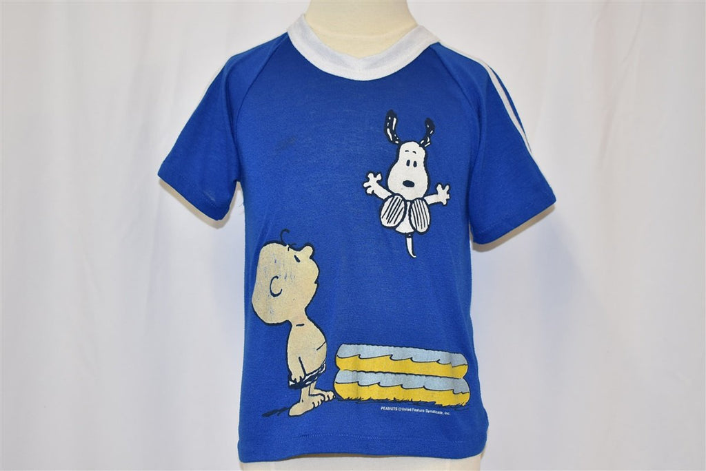 This vintage tee pays tribute to the lovable comic strip cartoon Peanuts. It's an eighties original loaded with awesome graphics and one hundred percent polyester- super comfy and fun to look at.
