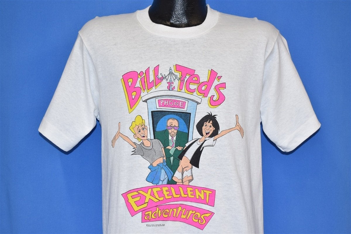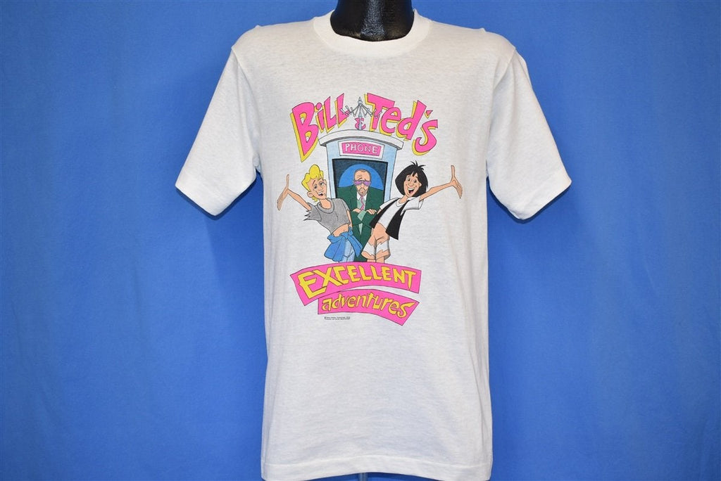 This shirt is from the first season of the show which was produced by Hanna-Barbera and featured Reeves, Winter, and Carlin all reprising their roles for the voice cast. For the second season the series switched production companies and began airing on Fox Kids. Fox had also made plans to launch a live action series and because of this they recast the leads in order to match the live action series. Evan Richards was recast as the voice of Bill and Christopher Kennedy was recast as Ted. The live action series did not last long, and the animated series was canceled after the second season.