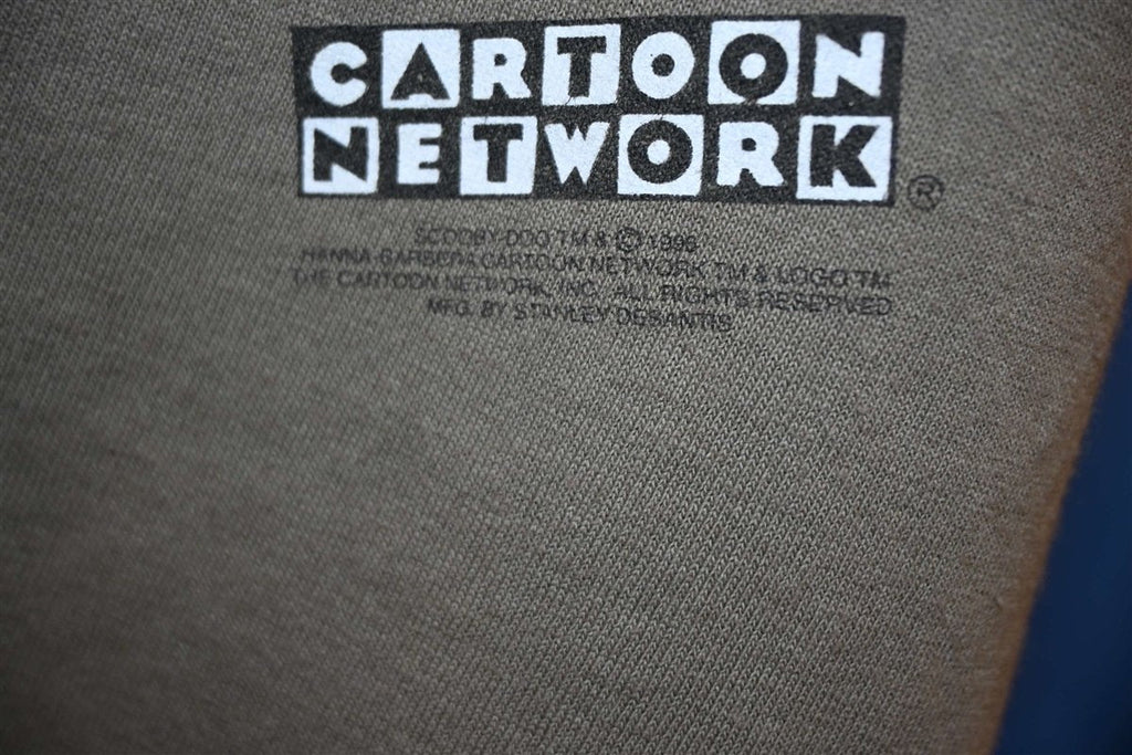 This shirt was made in the mid 90s and features the Cartoon Network logo. During this period of time Hanna-Barbera was acquired by Turner Broadcasting, and by the end of the 90s Scooby had become the exclusive property of Cartoon Network and its sister station Boomerang. This was also around the time that the Mystery Inc. gang began appearing in direct-to-video movies like Scooby-Doo! and the Witch's Ghost.