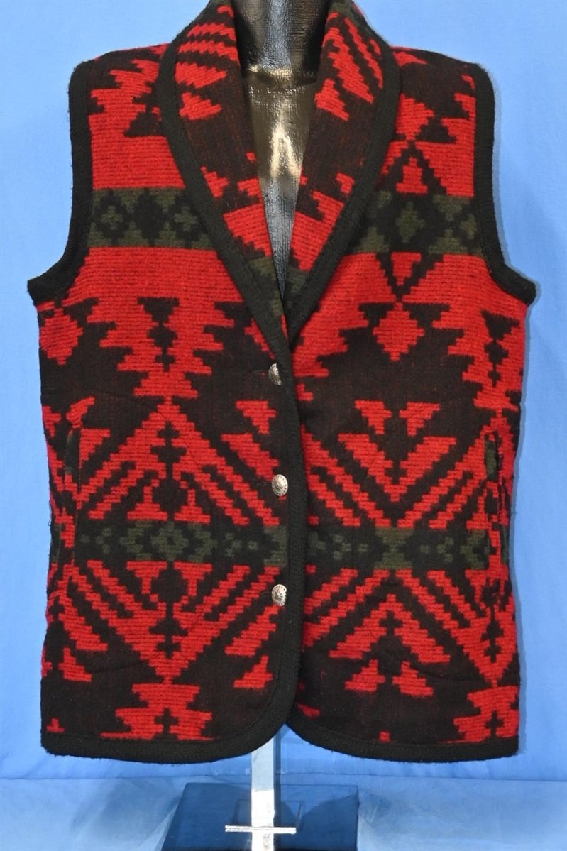80s Woolrich Red Black Aztec Wool Vest Women's Large