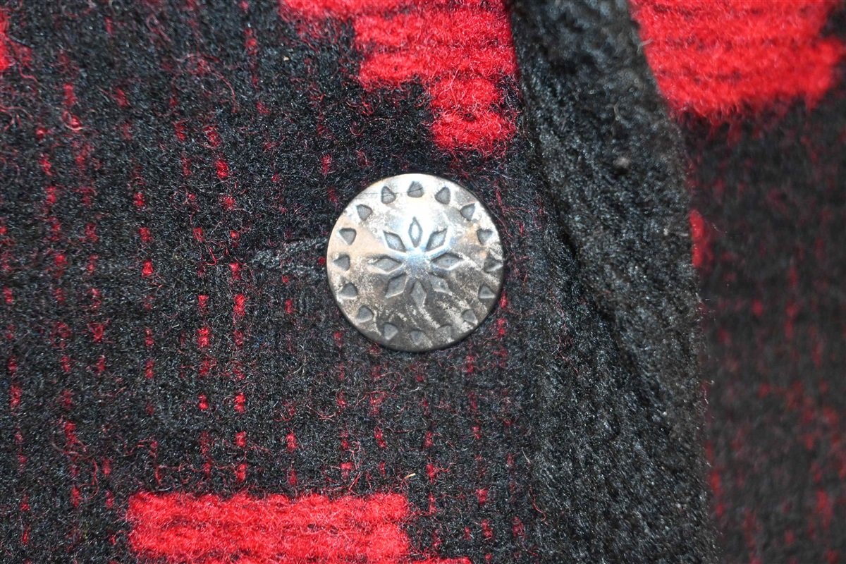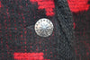 This amazing vest was made in the 80s by Woolrich. Named for its birthplace of Woolrich, Pennsylvania, Woolrich has been producing quality outdoor clothing as far back as the 1800s. This gorgeous vest features an intricate red and black Aztec design, and it also features silver button closures, two hands pockets, and a comfy polyester lining.