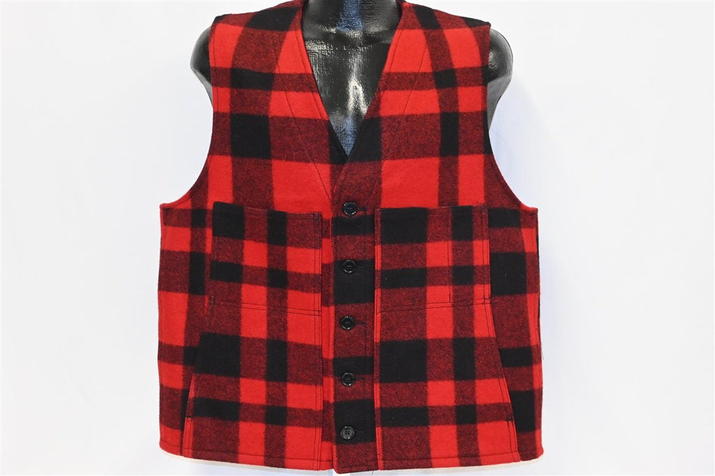 90s Filson Red Black Plaid Mackinaw Wool Vest Large