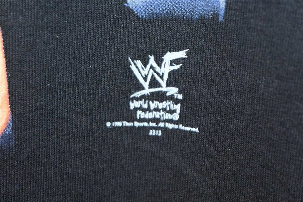 This sweet WWF tee celebrates Ken Shamrock, or as the shirt refers to him, "the world's most dangerous man". Shamrock would later come to be known for his prowess as a mixed martial artist, and he was part of the inaugural class of UFC Hall of Fame inductees, but before he joined the UFC, Shamrock was a successful WWF wrestler.