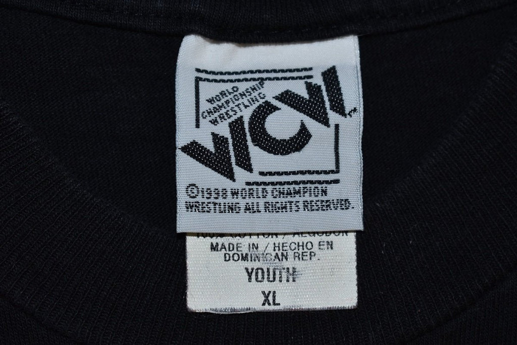 This epic WCW tee is dedicated to one of wrestling's most beloved stars, Sting. It's a 1990s original loaded with awesome graphics, amazing one hundred percent cotton, and a cool baggy fit- very comfy and full of old school magic.