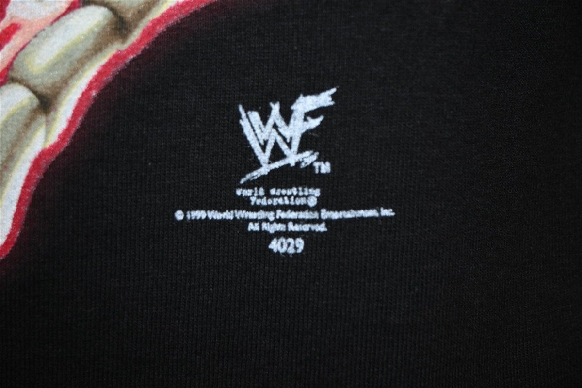 This sweet wrestling tee is for Stone Cold Steve Austin and it features wicked graphics that perfectly capture the intensity of Stone Cold's wrestling persona. Steve Austin was a Texas born pro wrestler who originally was a part of the WCW. Ironically, he was let go by the franchise because the company's president didn't see him as a marketable wrestler. When Austin later joined the World Wrestling Federation, he grew into one of the WWF's most popular characters. This shirt features the tag line, "No Mercy", and a graphic of a snake, in honor of Stone Cold's nickname, "The Texas Rattlesnake".