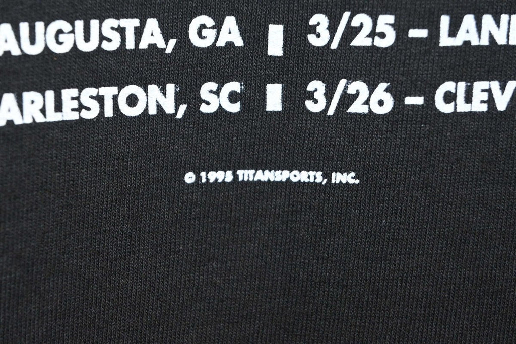 This awesome wrestling tee was made to commemorate the WWF's In High Gear Tour, which ran through 1995. This tour took several World Wrestling Federation stars on the road, and offered fans around North America the opportunity to see several of their favs wrestle live at a house show. Some of the performers featured on this tour included Bam Bam Bigelow, Shawn Michaels, Razor Ramon, Diesel, Bret Hart, Jeff Jarrett, and the Undertaker.