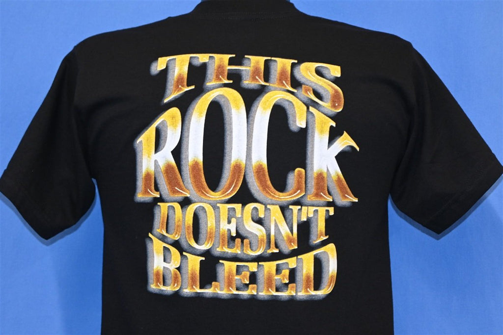This cool tee was made to rep the WWF super star, Dwayne "The Rock" Johnson. The front of this tee says "Know Your Place", while the back reads, "This Rock Doesn't Bleed". The Rock was one of the most popular wrestlers to emerge out of the World Wrestling Federation's Attitude Era. The Rock was a crowd favorite, despite the fact that he spent most of his pro wrestling career playing a heel. In fact, the wrestler became known for his smart mouth, and his entertaining trash talk was largely what made him such a hit with fans.