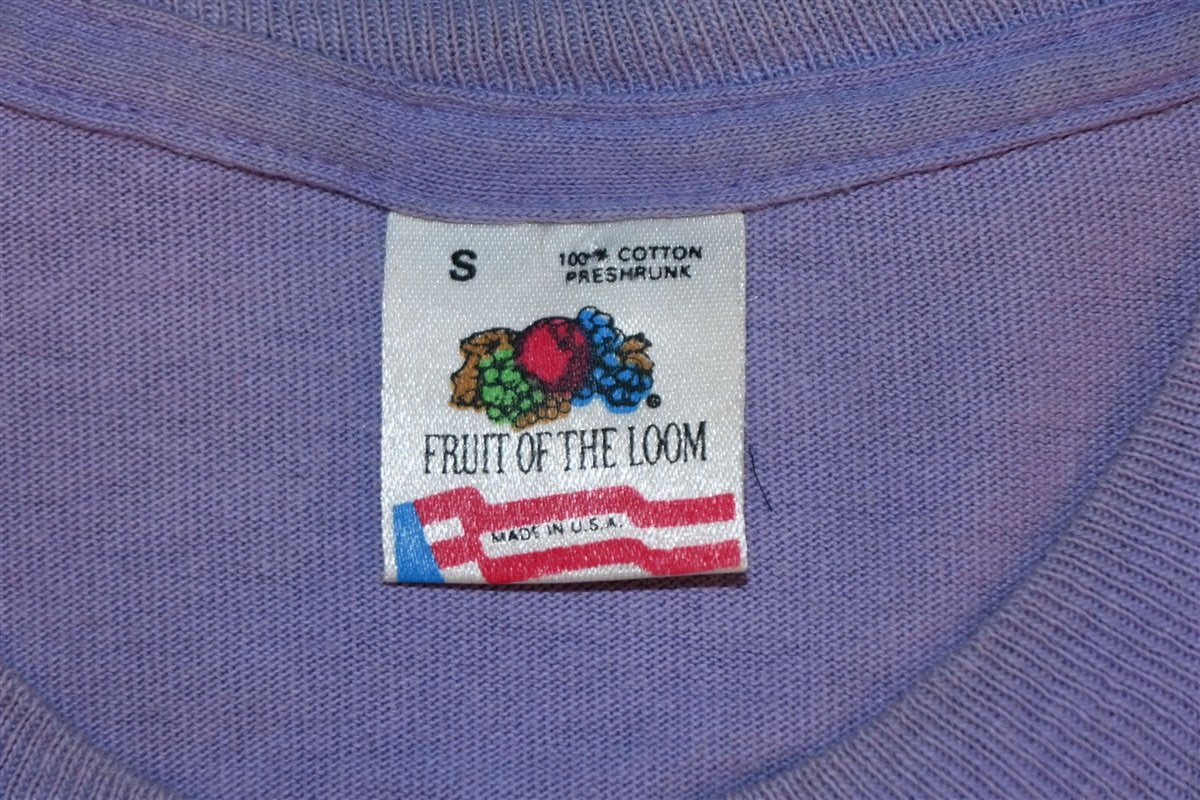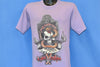 This sweet purple t-shirt is a souvenir from Sin City, the colorful vacation destination of Las Vegas, Nevada. The t-shirt features an intensely cool graphic of a skull and rattlesnake next to a poker hand known as a "dead man's hand". Typically this hand consists of a pair of black aces and a pair of black eights. Supposedly this was the hand of cards that was being held by gunfighter and folk hero, "Wild" Bill Hickok the moment that he was shot dead during a game of poker.