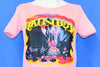 This awesome Rainbow tee comes from one of the British Rock band's concerts throughout the 1970s. Rainbow is sometimes called "Blackmore's Rainbow", after the lead of the band Ritchie Blackmore. Rainbow is pictured on this tee on stage,where they were well known for their mystical and fantasy infused sets. The band is also well known for being the band that Ronnie James Dio left to join Black Sabbath for in 1979. If you look closely at the graphic of this tee you can see Dio clutching the mic in his passionate style.