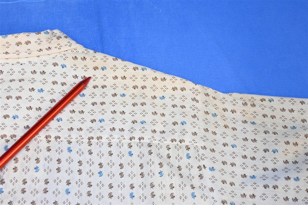 Fits like a modern size 18 or youth extra large. There is some light discoloration on the top of the shoulders, see pics.