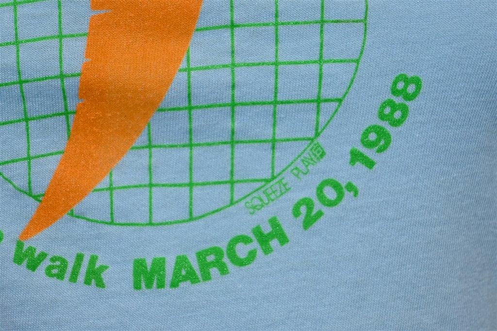 This great tee was made to celebrate the 1988 Healthy Hustle in Hawaii. This local event was held in the late 80s and early 90s to encourage health and fitness.