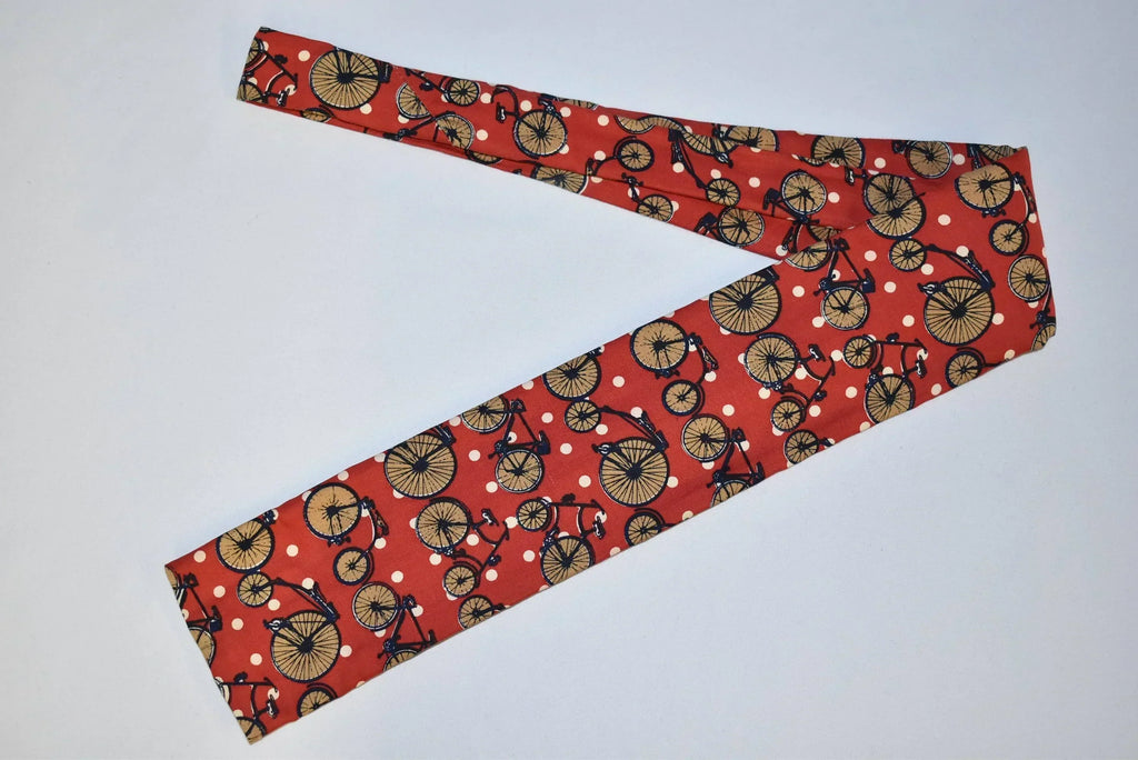 60s Bicycle Motif Red White Polka Dots Square Bottom Necktie