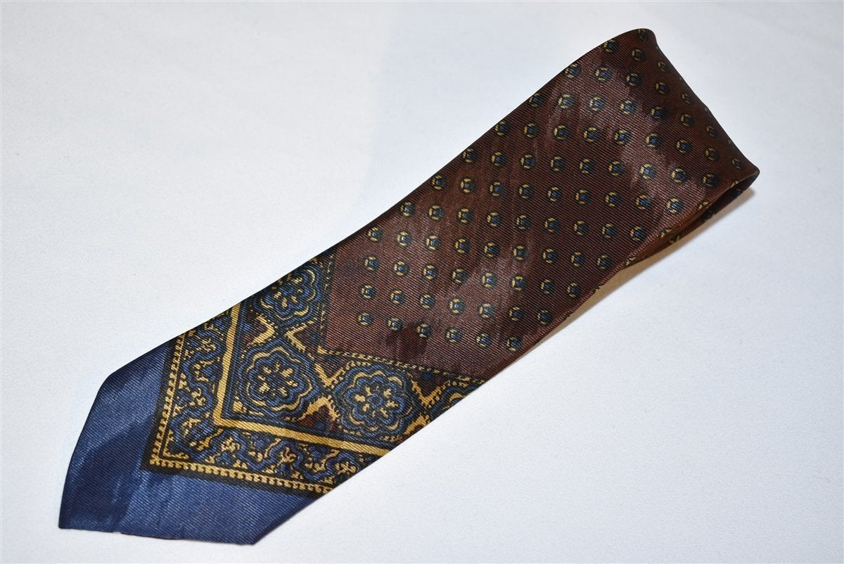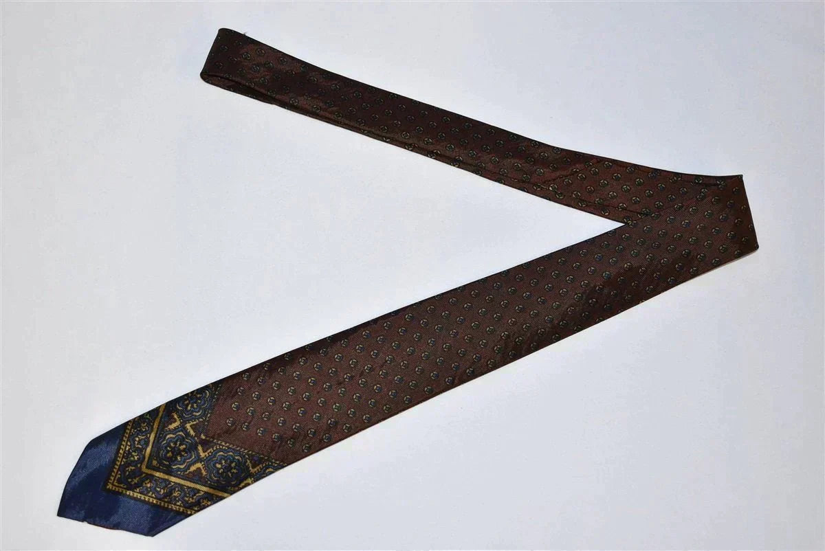 This vintage necktie takes a more artistic approach to formalwear. It has a classic skinny style with intricate designs like polka dots and a floral motif. The color schemes keep the mood serious and classy with deep maroons and dark blues. It has no keeper loop and is self-tipping.