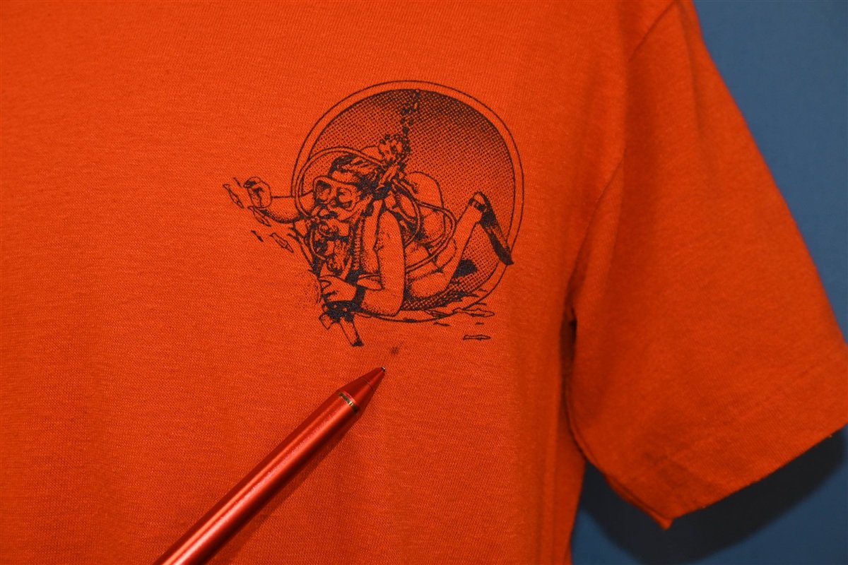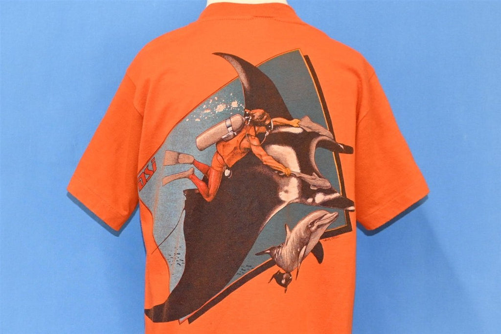 80s Scuba Diving Manta Ray Dolphin Orange t-shirt Youth Large
