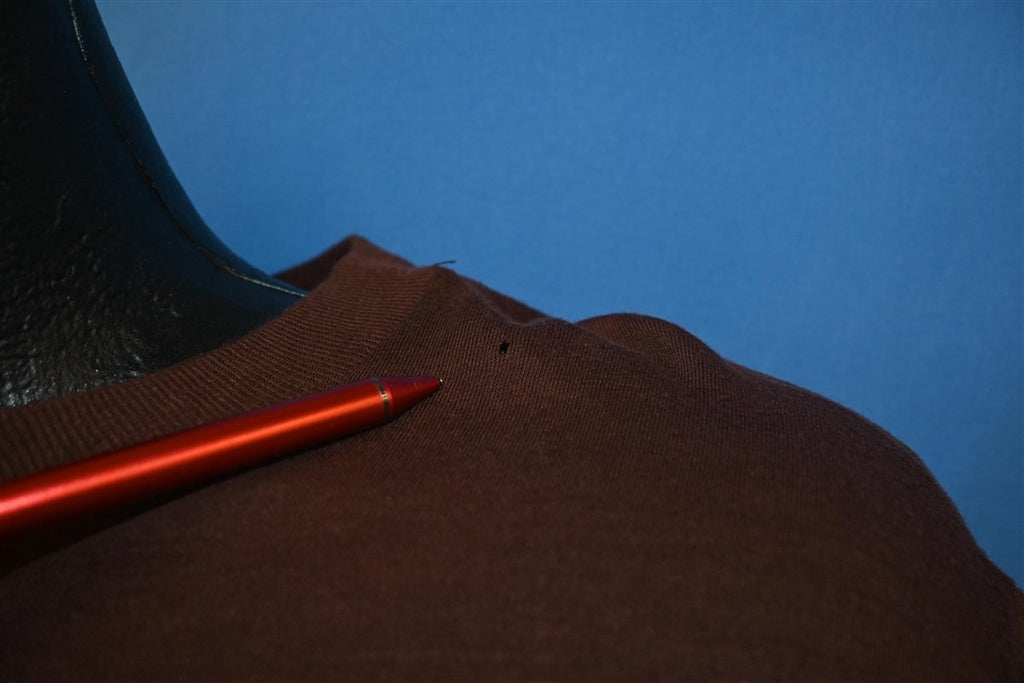 The tag says large but this shirt fits like a modern unisex adult medium. There is a tiny hole on the shoulder, see pics.