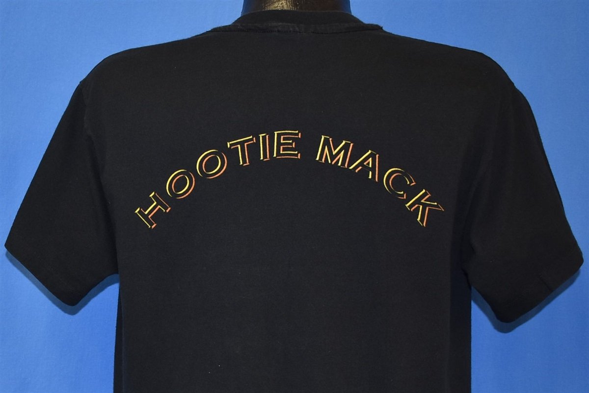 This awesome double-sided shirt is for the R&B group Bell Biv Devoe and the shirt celebrates the band's second studio album titled Hootie Mack. Released in 1993, Hootie Mack was the follow up to the group's wildly successful quadruple platinum debut Poison. It featured some of the top R&B producers at the time including Christ Stokes, L.A. Reid, and Babyface and managed to peak at the number 19 spot on the Billboard 200 and the number 6 spot on the Top R&B Albums chart.