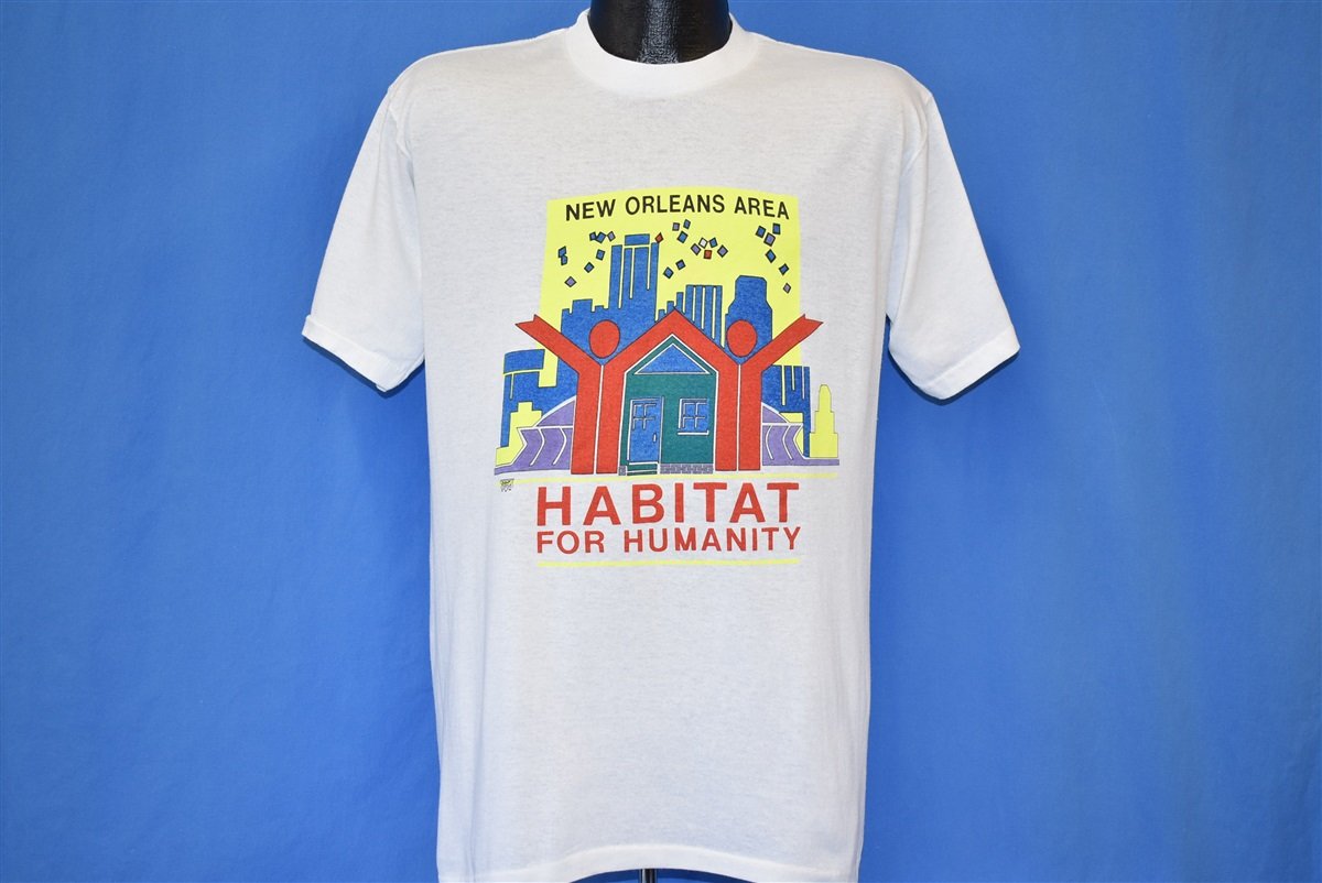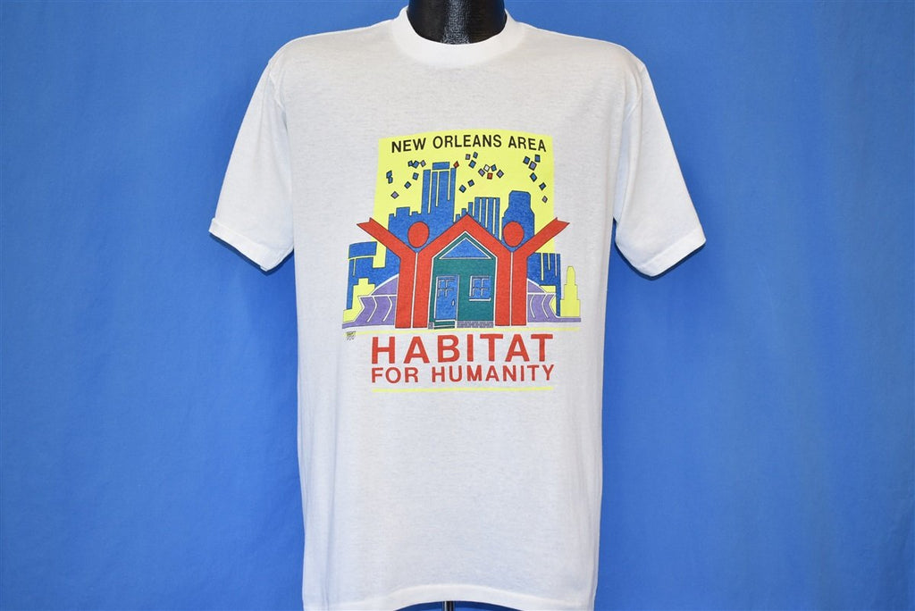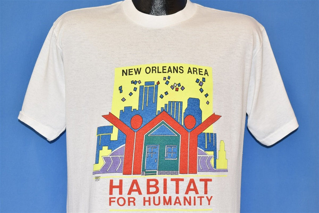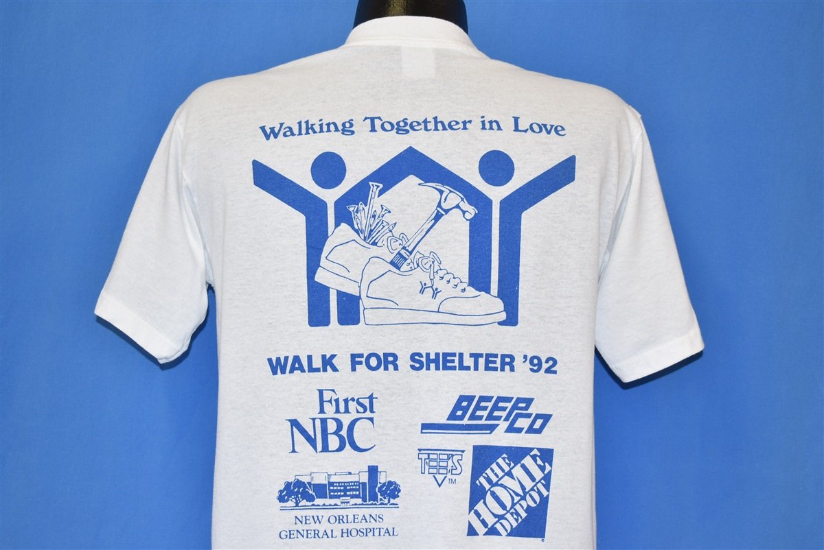 This vintage tee was specially made for the 1992 Walk for Shelter event in New Orleans. It's held up great over the years and has a ton of life left. Features a strong cotton feel, double sided print, and awesome neon graphics for that old school look and feel. Notable sponsors for the event were Home Depot, NBC, and Beep Co.