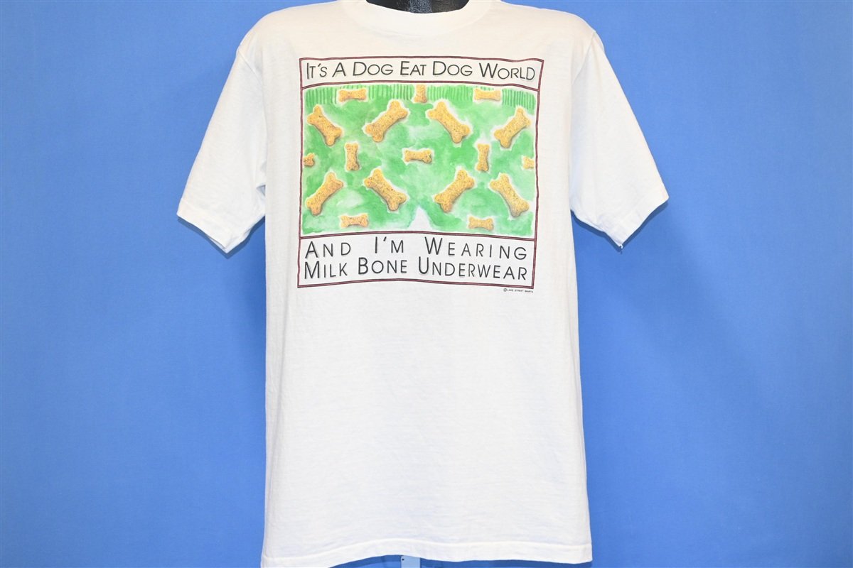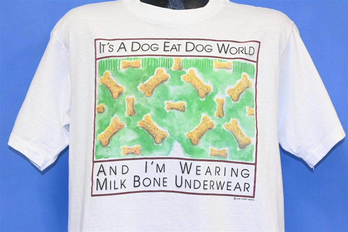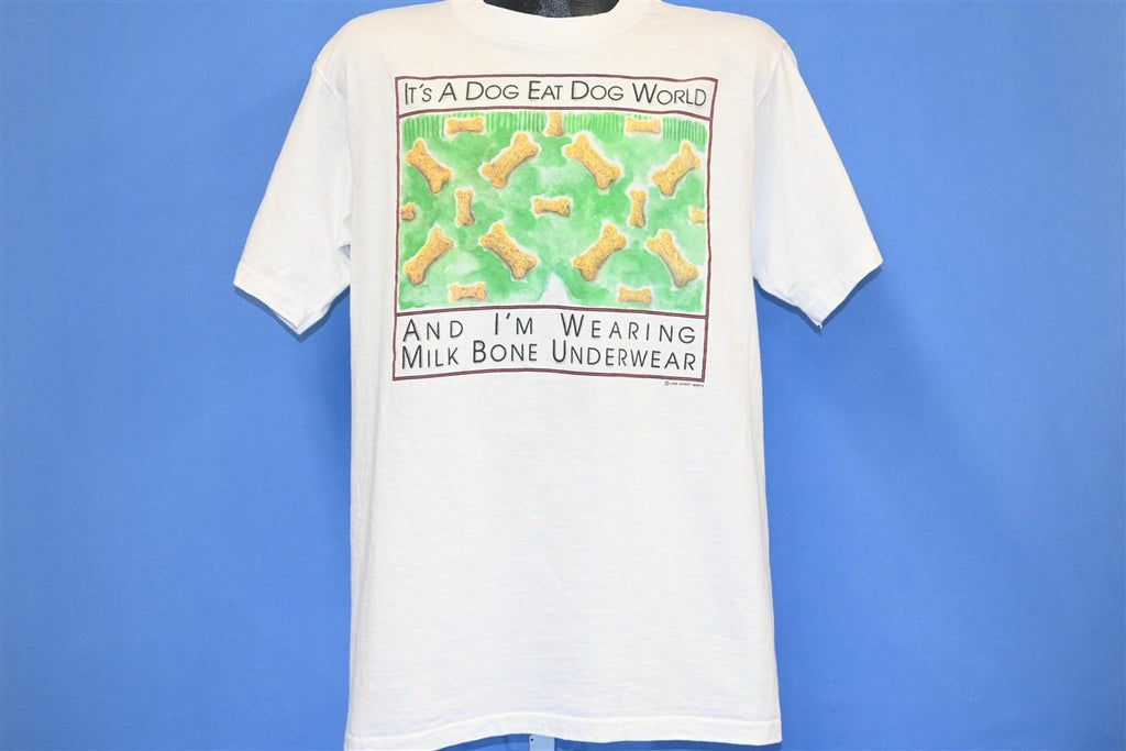 90s It's a Dog Eat Dog World Milkbone Underwear t-shirt Large