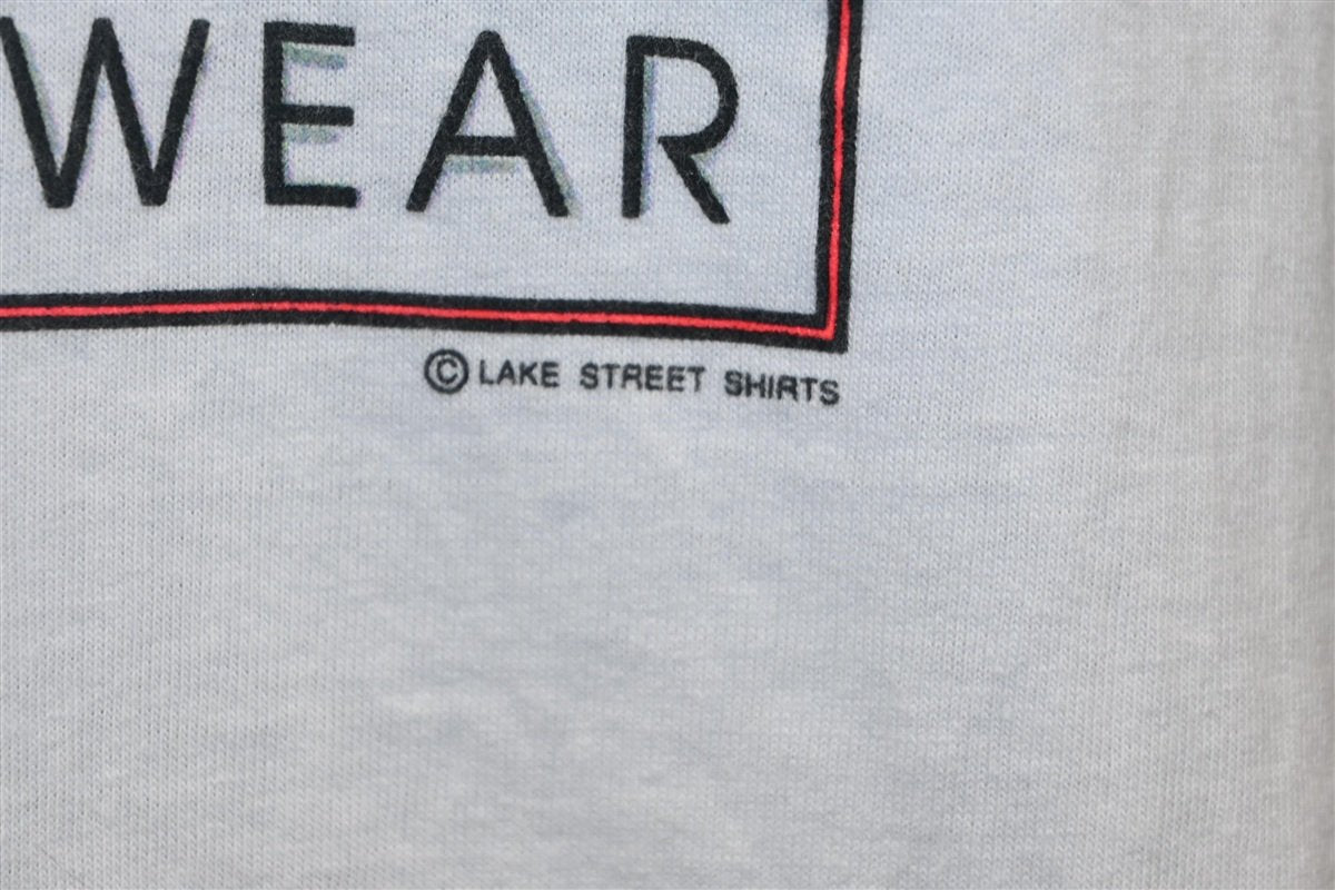 This hilarious tee puts a twist on the old saying dog eat dog. The shirt reads, "It's a dog eat dog world and I'm wearing Milk Bone underwear". This vintage shirt offers a great reminder to always try and find the humor even when life gets tough.