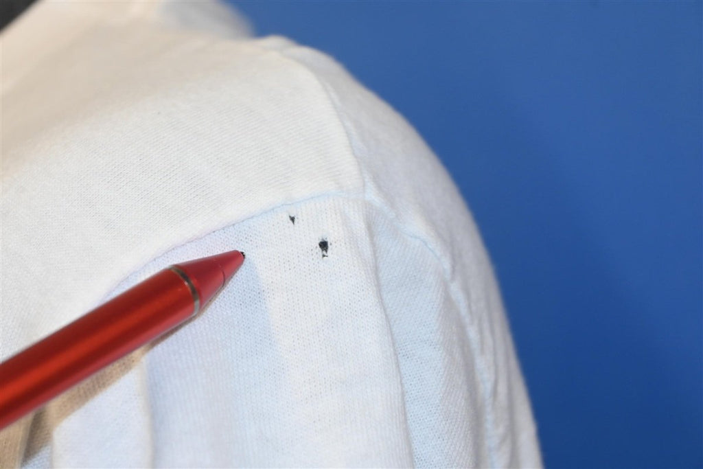 Fits like a modern unisex adult large. There's some holes on the left shoulder when wearing, see pics.