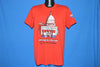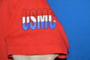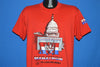 This red vintage t-shirt is from the 16th annual Marine Corps 'Marathon for a Drug Free America'. The graphic on the t-shirt has an image of the United States Capitol Building and a runner breaking the finish line tape. The left sleeve says "USMC" in red white and blue font. The MCM was first established in 1976 and is the fourth largest marathon held in the United States and the largest marathon which does not offer any prize money. It takes place in Arlington, Virgina and Washington D.C.