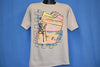 This sweet vintage shirt was made back in the 90s and it offers a colorful beach themed graphic on a soft cottony material. The shirt includes a funky neon graphic of a lifeguard gazing out at an ocean sunset, and next to him are the words "Shoreline View". The shirt has held up beautifully over the years and is the perfect vintage piece to wear during a relaxing beach vacation.