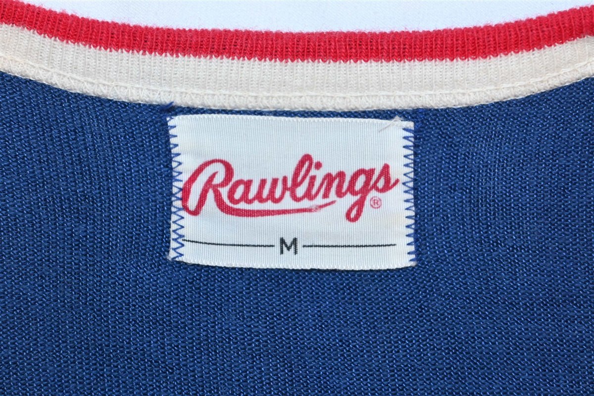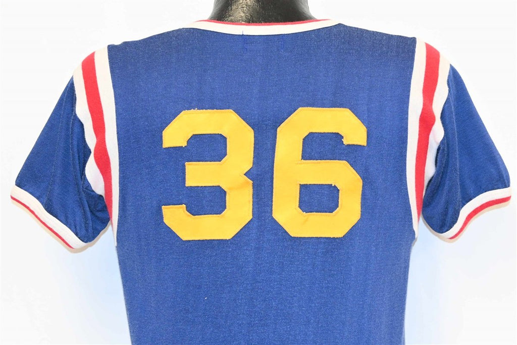 This awesome vintage jersey dates back to the 1950s, and it's held up beautifully for more than half a century. This rayon jersey features stripes around the sleeves and an embroidered patch of the former logo for the General Telephone System. During the days of the Bell System, General Telephone managed to stand out as the largest independent telephone company in the US. The company did eventually merge with Bell Atlantic in 2000, and together they formed Verizon.