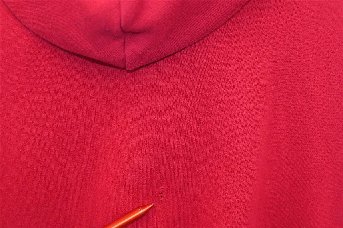 The tag says extra large but this shirt fits like a modern unisex adult medium. There are some small holes on the back, see pics.