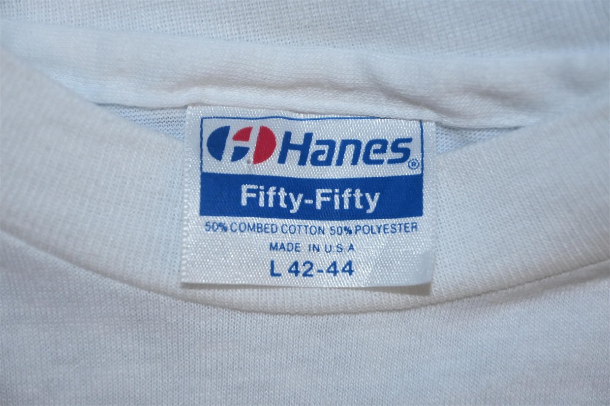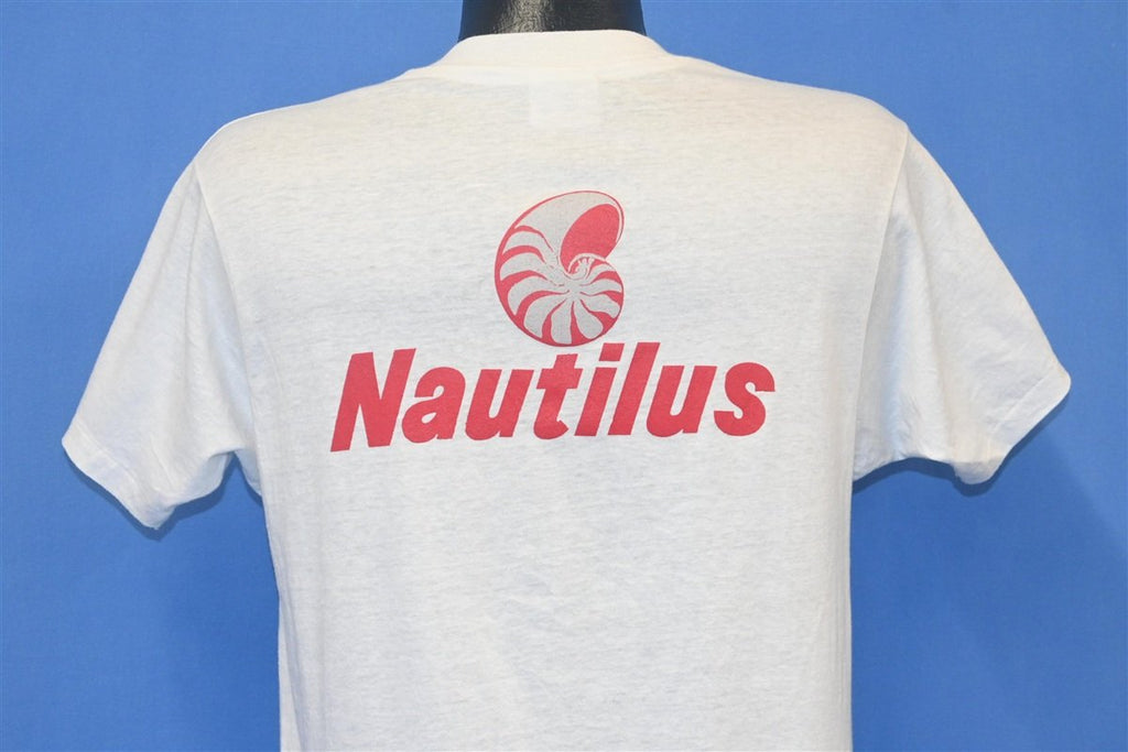 This cool double-sided tee commemorates an AFB Conference held in Fort Worth, Texas in 1985. In this instance, AFB likely stands for Air Force Base, as Fort Worth is home to what was formerly known as the Carswell Air Force Base. The back of this tee features the logo for the fitness equipment brand Nautilus, which later became known for creating the Bowflex. Nautilus was founded by Arthur Jones, who helped to popularize the practice of high intensity training, and for years Nautilus exercise machines have been used by the US Military to help recruits stay in tip-top shape.
