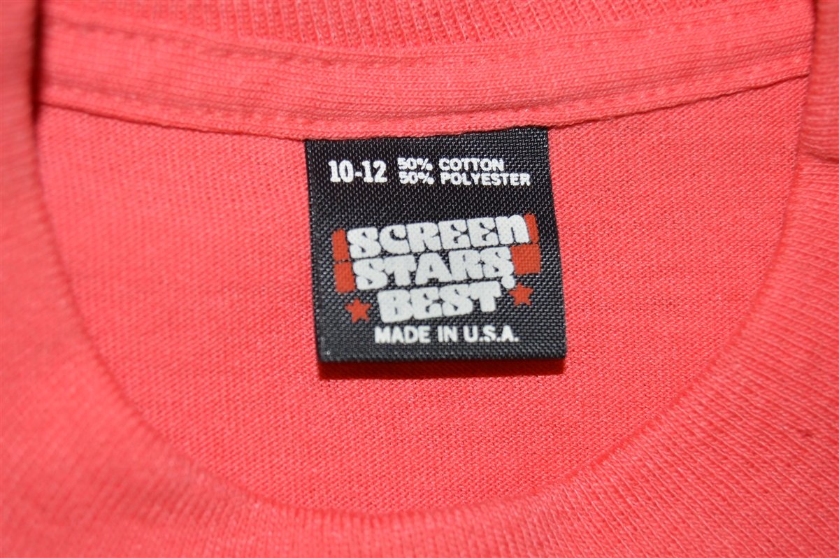 This fun vintage kid's shirt was made in the 80s by Screen Stars. The shirt is totally blank without any kind of graphics on the front or back. It comes in a delightful bright coral pink. This shirt would be great for customizing with graphics of your choice or it can be worn as is.
