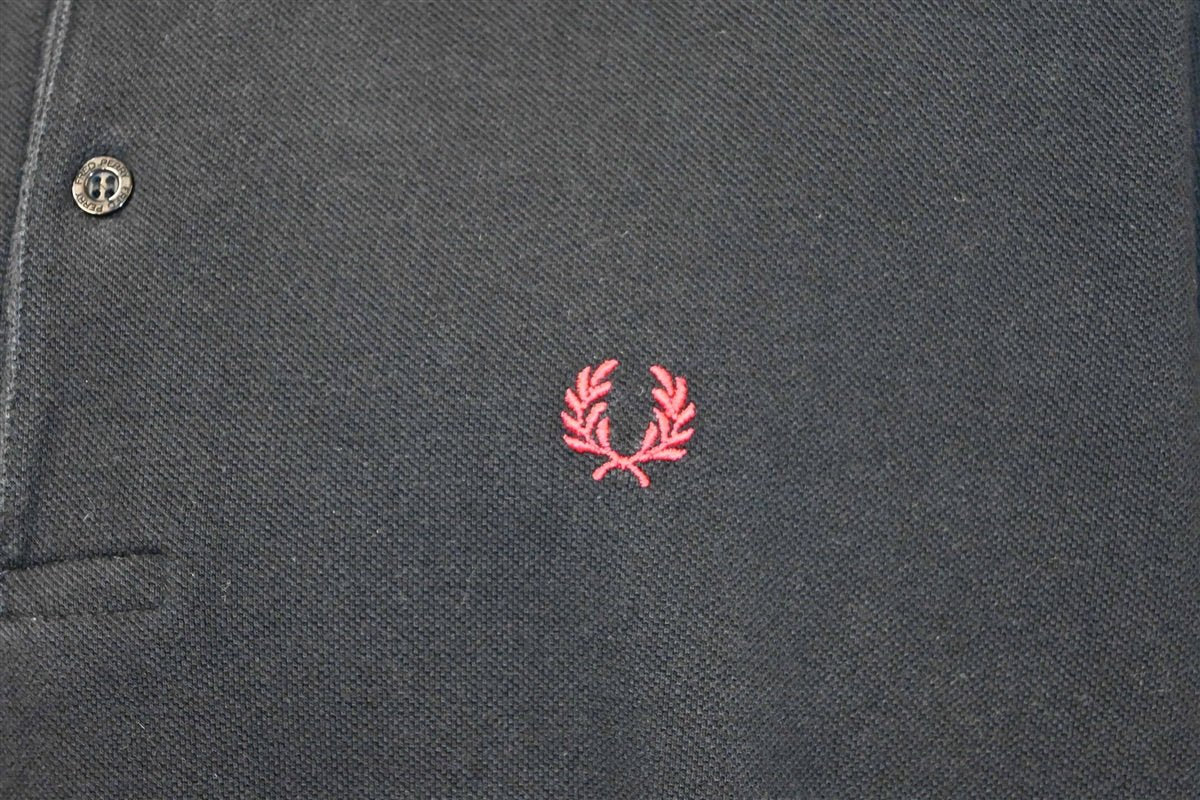 This cool polo is from the British fashion brand Fred Perry, which was founded by the tennis player Fred Perry in the 1950s. This shirt is an example of the brand's original M12 twin tipped design, and it features red detailing and a red logo stitched onto the chest.