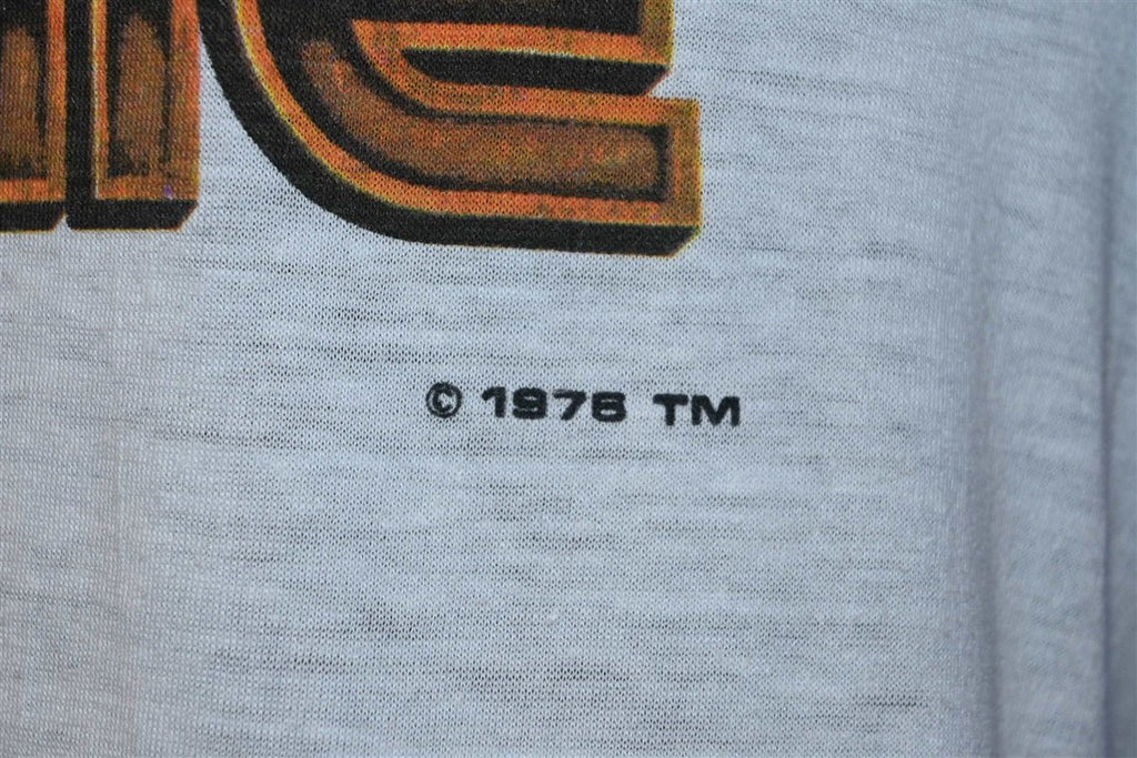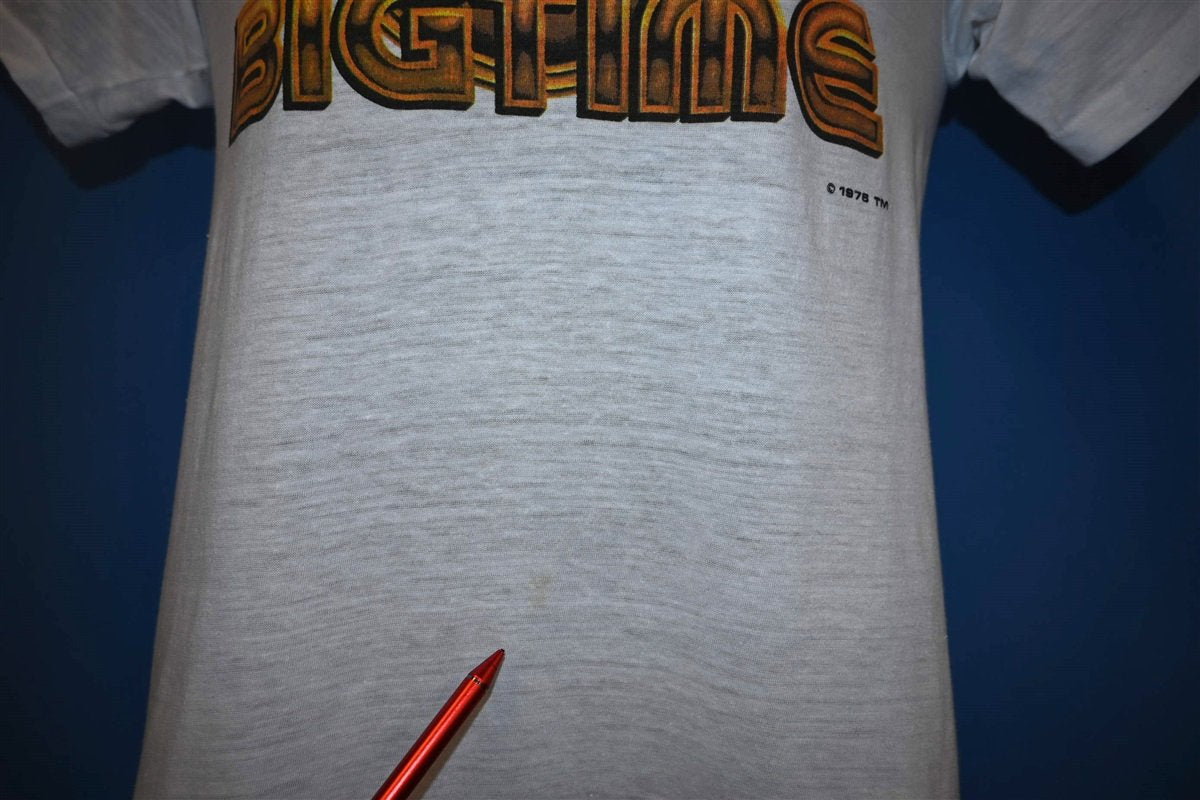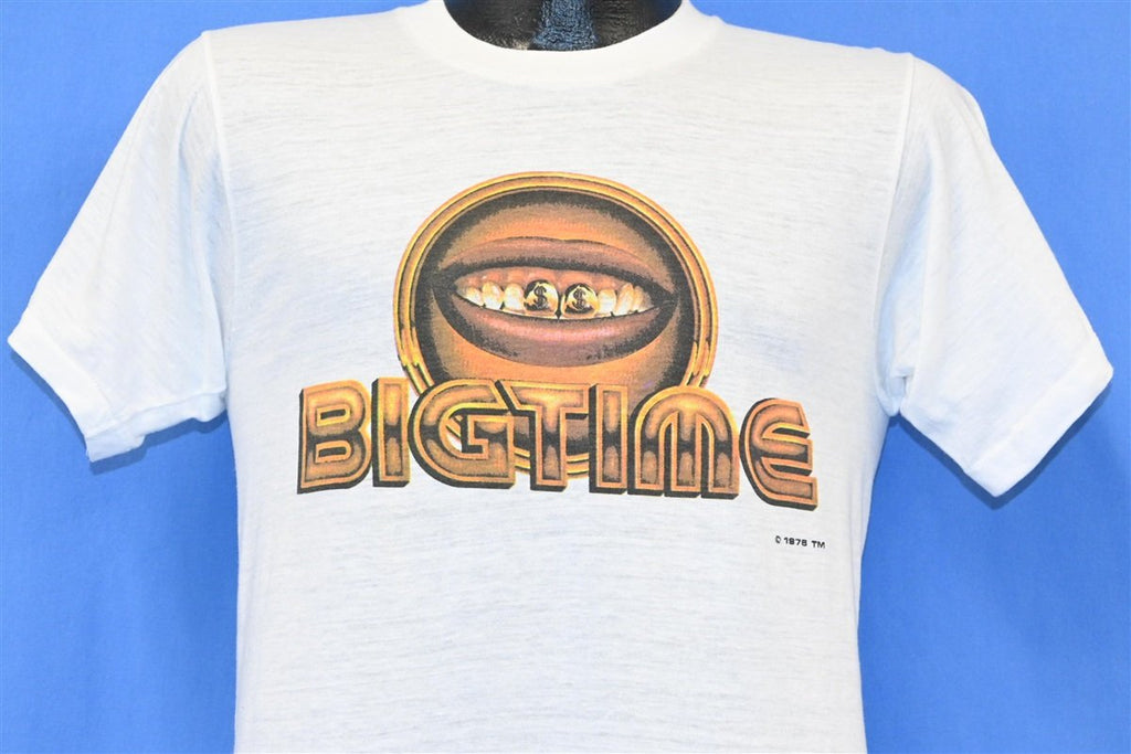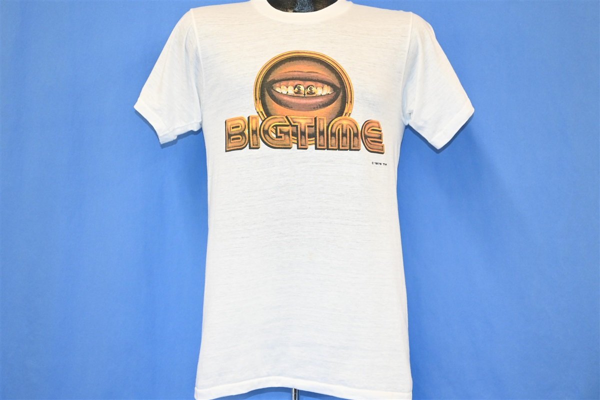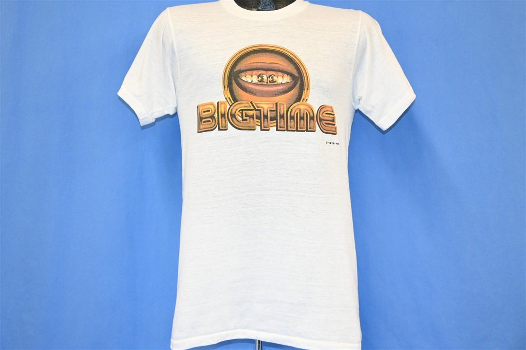 This cool vintage shirt promotes the 1977 film Big Time, which was directed by Andrew Georgias. This 70s comedy was a blaxpoitation film that was funded entirely by Motown Records. The movie centered around a small time con artist played by Christipher Joy, who comes into a suitcase full of money, belonging to the mob.