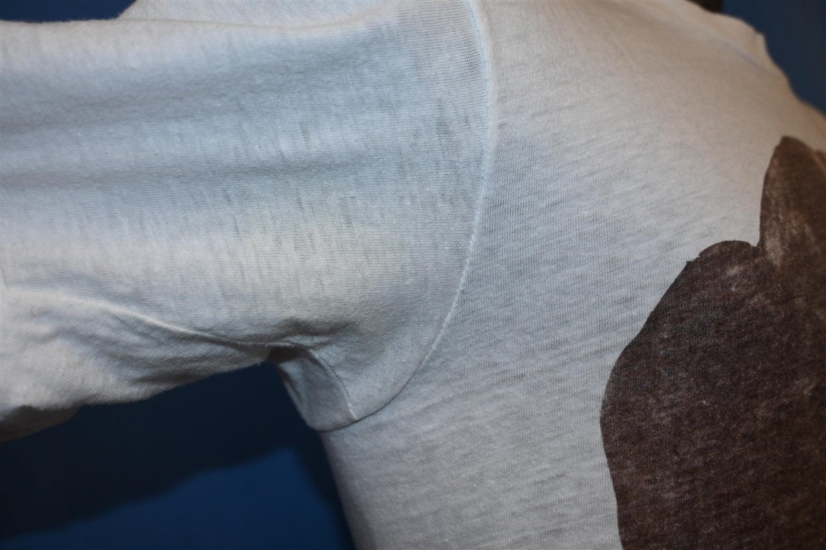 The tag says medium  but fits like a modern unisex adult small. There's some light discoloration, see pics.