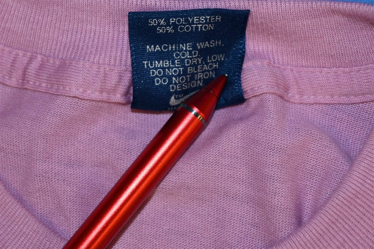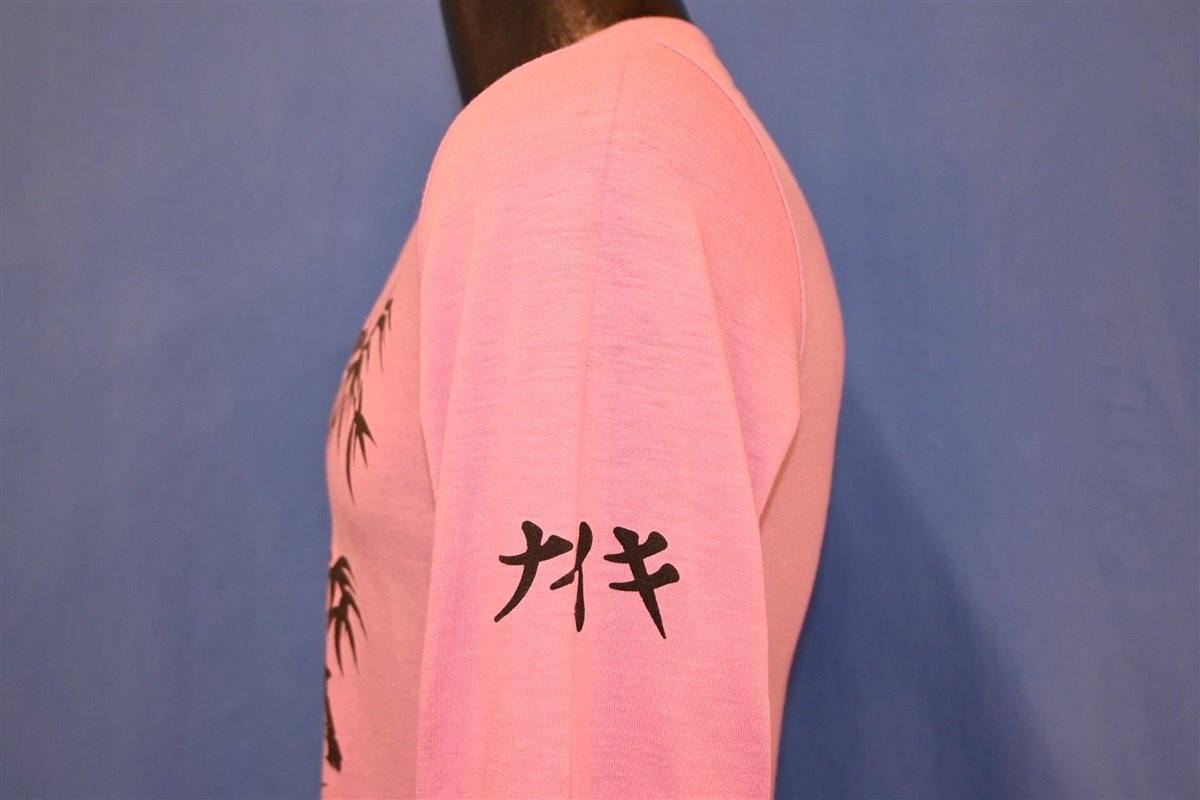 The left sleeve of this shirt features the Katakana symbols for Nike. Japanese imagery was very popular in the United States in the 80s because of the economic success Japan was enjoying at the time. Also featured on the front of this shirt is the iconic Nike swoosh logo.