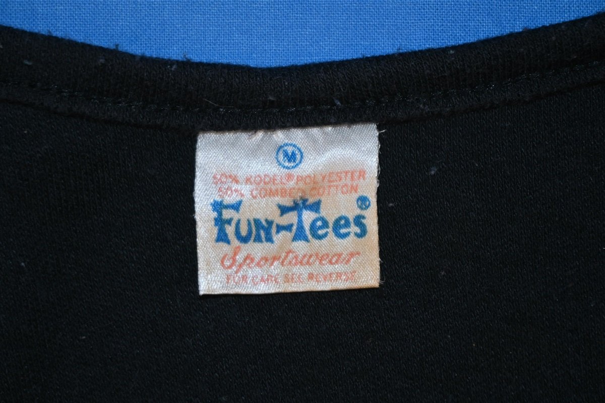 This cool biker chick tee is from Sheldon's Harley Davidson of Worcester, Massachusetts. For over 80 years this dealership was operated by members of the Sheldon family, and it was founded all the way back in 1922. The popular American motorcycle manufacturer, Harley-Davidson is well known both nationally and globally, particularly for their loyal fan base. The company helped to popularize the chopper style of motorcycles, and tees like this are considered classic Americana style thanks to them.