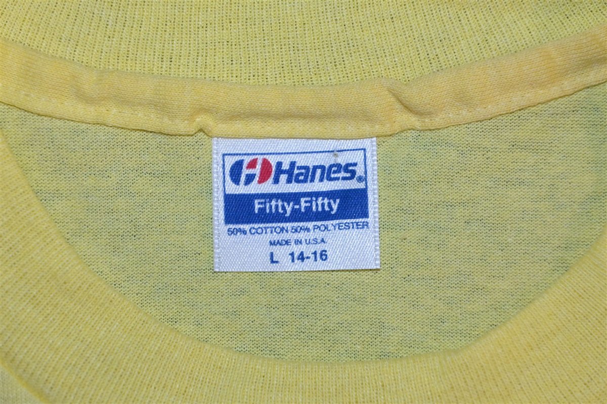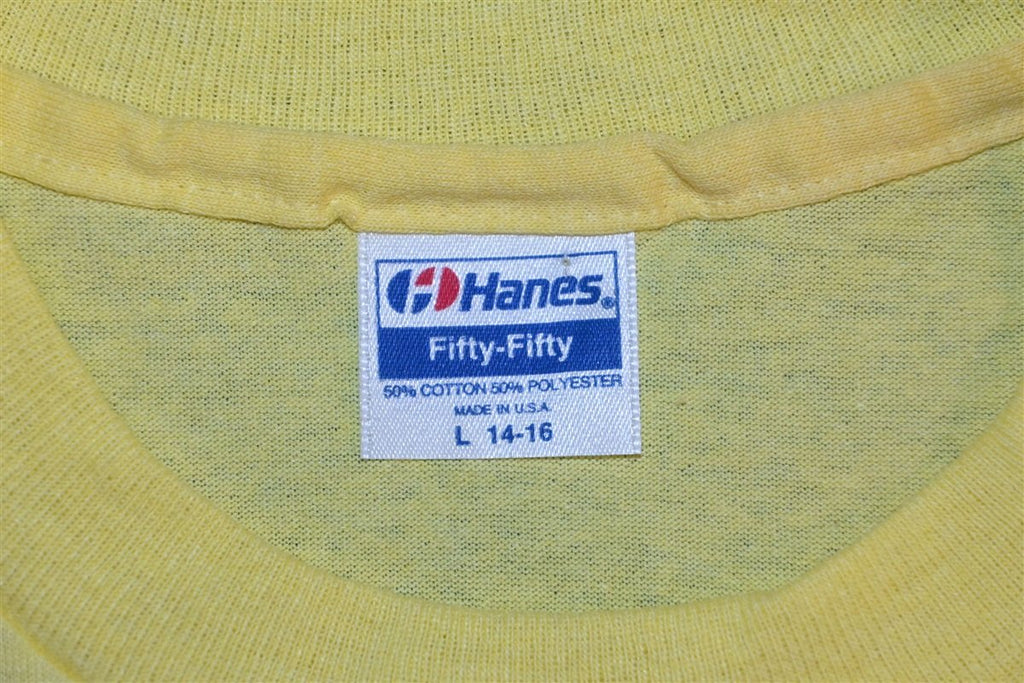 Fits like a modern unisex youth oversized large. There is some light discoloration on the back, see pics.