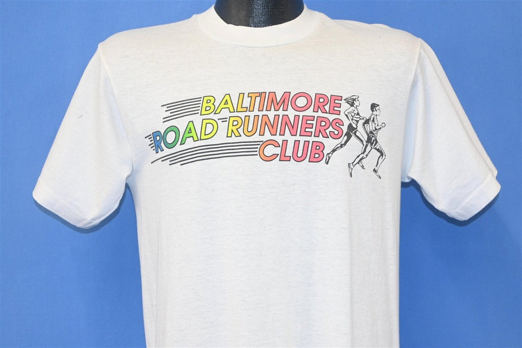This cool tee has a colorful graphic celebrating the Baltimore Road Runners Club. The club has been active for over 50 years, and they're sanctioned by the Road Runners Club of America. The club was started by Les Kinion, a marathon runner who wanted to create a local group that catered to people interested in both recreational and competitive running.