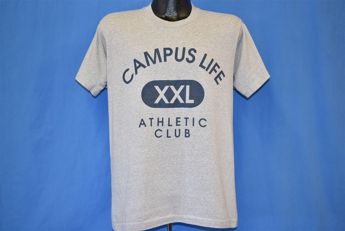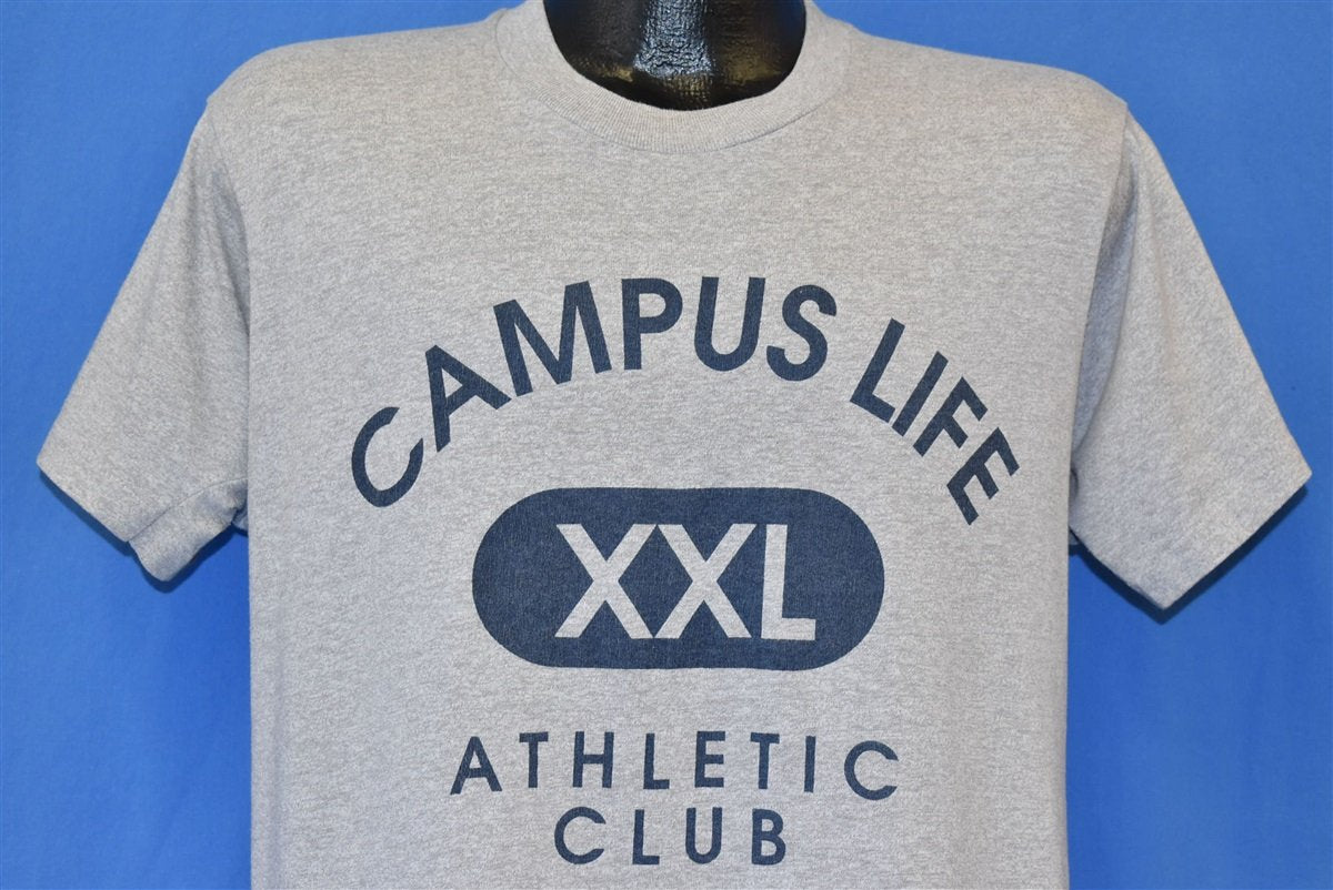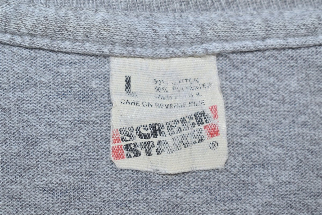 This vintage tee might have been custom made for a college sports club circa 1980s. It's held up great over the years and would make a great gym workout tee or PE shirt. Features soft poly cotton, a classic Screen Stars tag, and a soothing heathered gray.