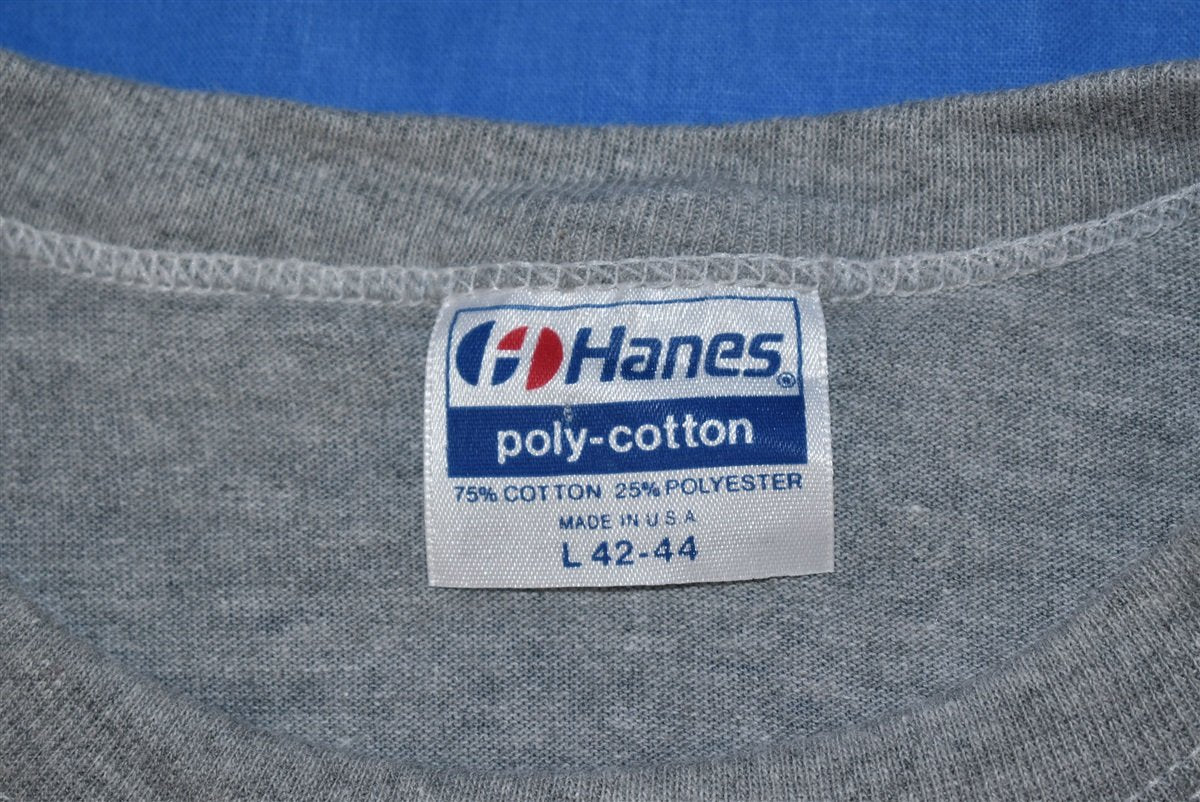 The tag says Large but this shirt fits a modern adult unisex Medium.