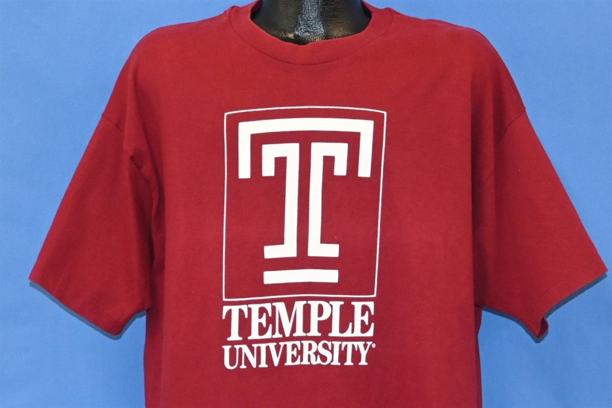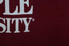 This sweet college tee reps Temple University, and it sports the school's cherry and white colors. Located in North Philadelphia, this public university is the proud home of the Temple Owls. The school was originally founded by the Grace Baptist Church of Philadelphia, and some of its notable alumni include Tim Heidecker, Mark Levin, and both Daryl Hall and John Oates of Hall & Oates.