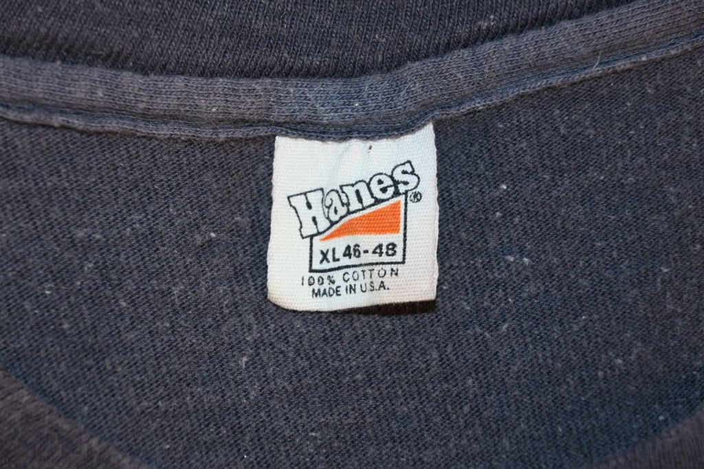 Fits like a modern unisex adult Extra Large. This shirt is soft and distressed with fading, holes, and discoloration throughout, see pics.