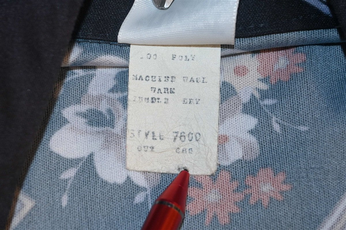 This sweet button down is an authentic disco shirt that was made by Stuart Mann in the 70s. The shirt comes in a rich shade of brown with a stylish floral design. Made from a sleek polyester material, it also features a single chest pocket.