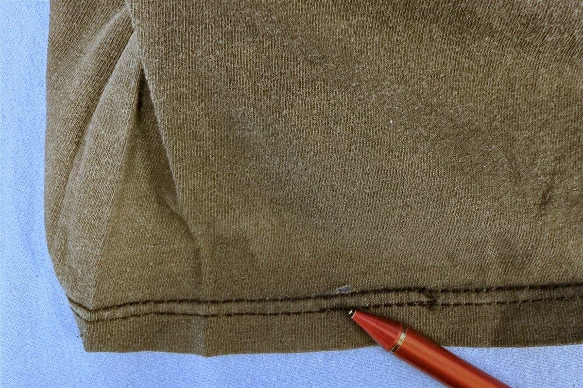 This sweet double-sided band tee is for the iconic shock rock group, Gwar, and the back parodies the famous frying egg anti-drug PSA with a comic that reads, "This is Gwar. This is you. This is you on Gwar." The copyright on this tee is from 1990 and it mentions Slave Pit Inc. which is the name of the artist collective that Gwar belongs to. In 1990, Gwar released what many fans consider to be their seminal album, a viewpoint which the band seems to share as the group has continued to perform more songs off their 1990 record than any of their other releases. This self-defined masterpiece was their second studio album, Scumdogs of the Universe.