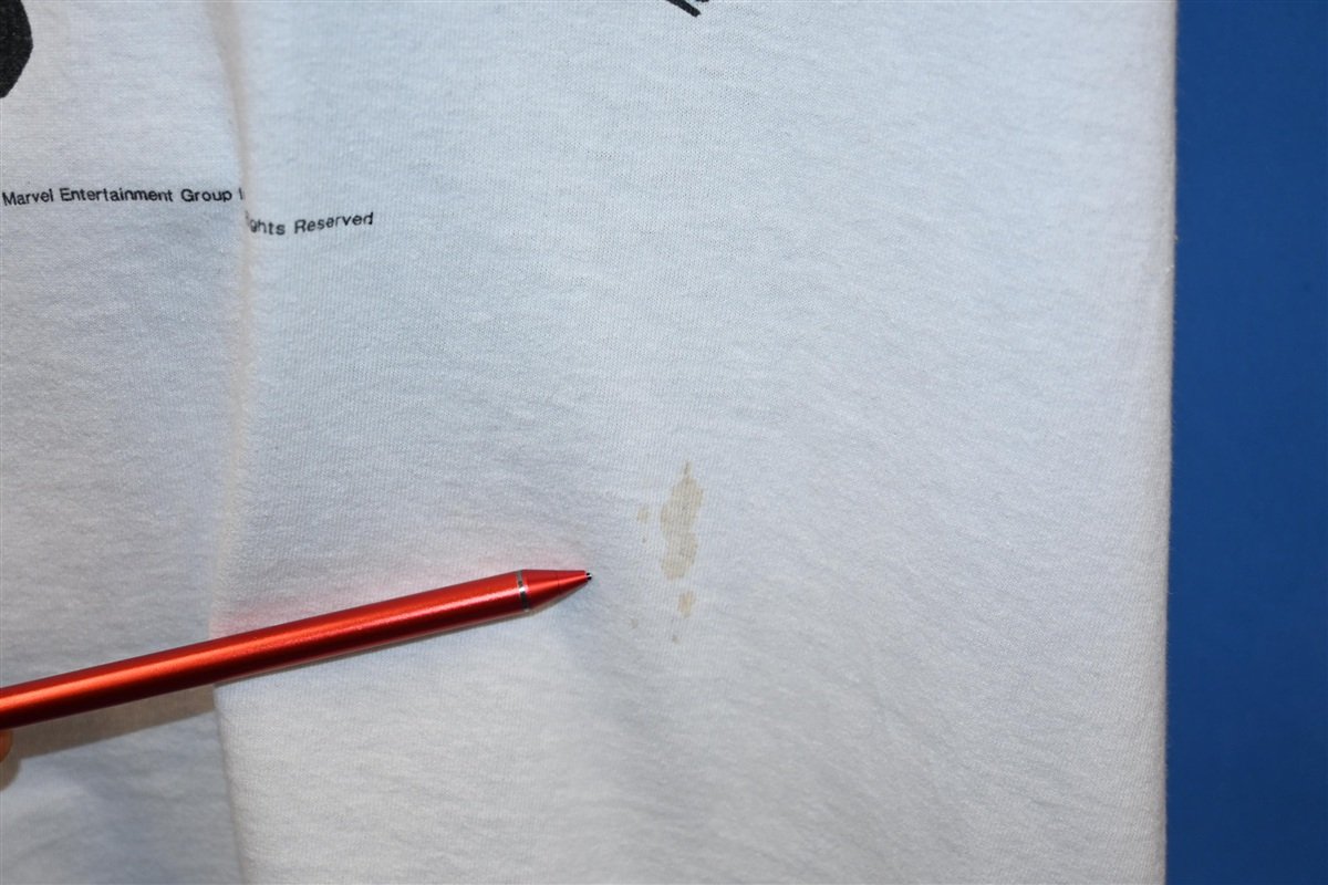 This awesome vintage shirt celebrates the mutant superhero group X-Factor, which was showcased in a series of eponymous comic books in the 80s and 90s. The group was composed of several beloved members of Marvel Comics' X-Men, and this shirt shows off the original members of the X-Factor team, which consisted of Angel, Beast, Cyclops, Marvel Girl and Iceman. The illustration on this tee was made in 1988, and later used as the cover for a compilation of French translations for X-Factor issues #36-42. One big indicator that this graphic dates back to 1988, is the inclusion of Archangel, with his blue skin and metal wings. Angel was given these cosmetic adjustments by Apocalypse, who tried to make the hero into one of his Four Horseman. After breaking from Apocalypse's control, the hero rejoined X-Factor under the new name of Archangel.