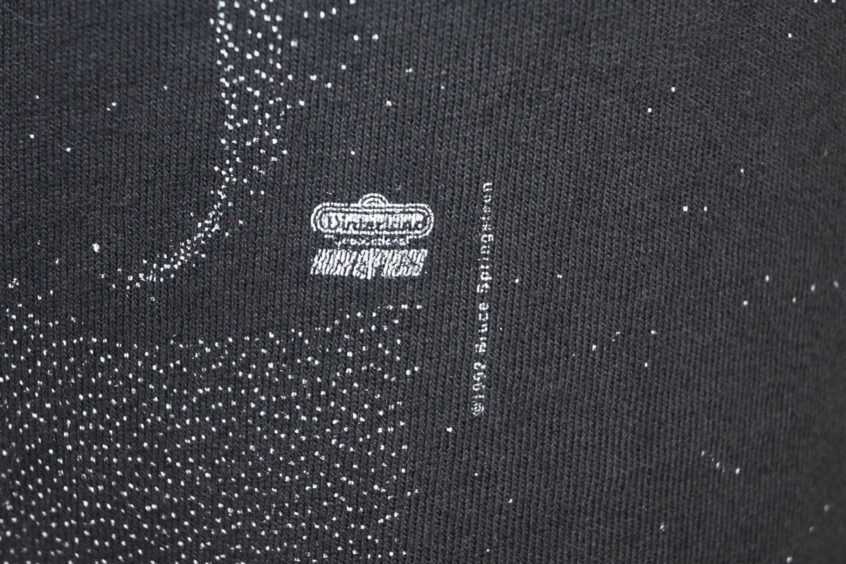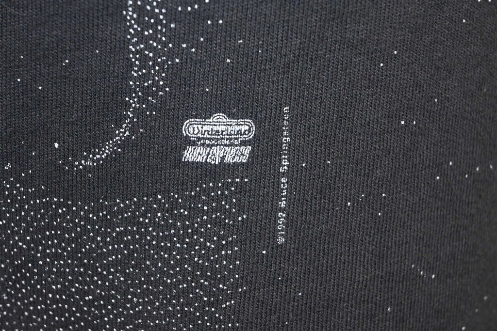 This awesome double-sided tee pays tribute to The Boss. This shirt was made in the 90s to promote Bruce Springsteen's ninth studio album, Human Touch, and the back features a big print graphic of the photo that was used for the album's cover. Human Touch was actually released on the same day as another Springsteen album, Lucky Town, but Human Touch proved to be the more popular of the two, reaching the number two spot on the Billboard chart. The title track also topped the Mainstream Rock charts, and it earned a Grammy nomination for Best Rock Song.